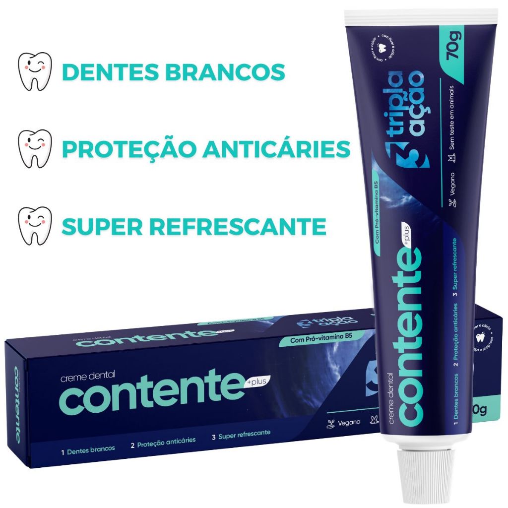 Kit 6 Creme Dental Vegano Tripla Ação 70g - Contente Plus