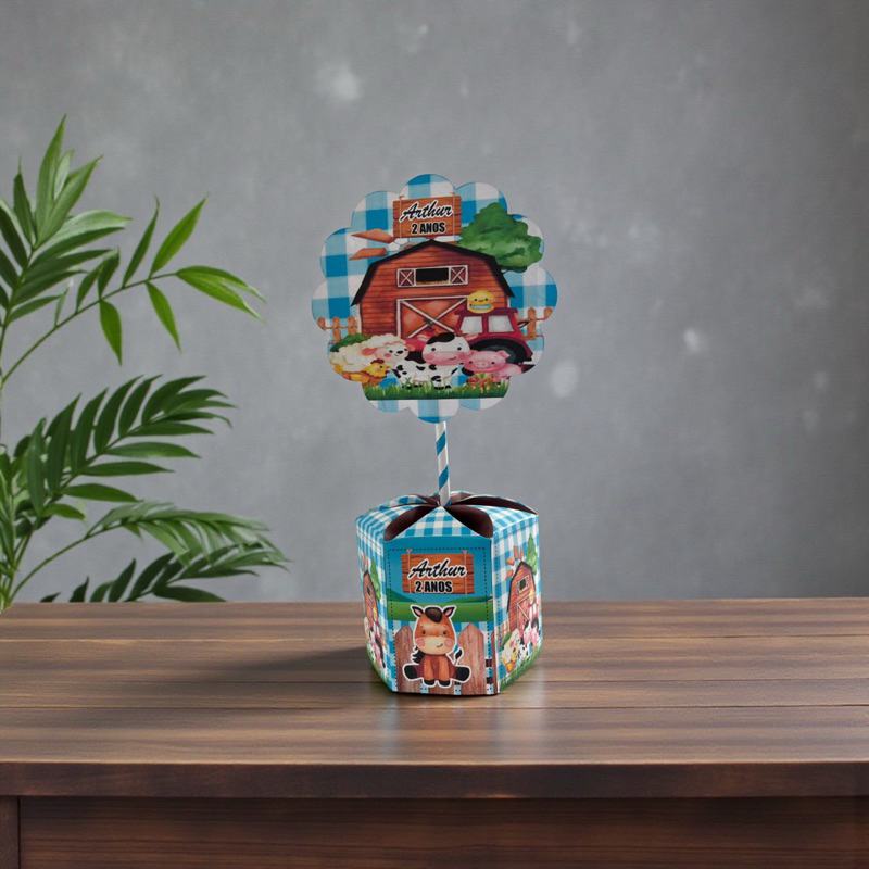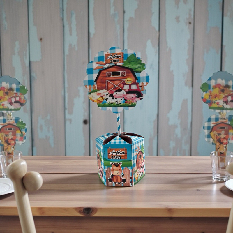 Centro de mesa fazendinha azul
