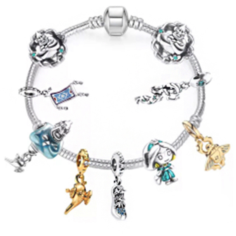 Berloque De Prata 925 Clássico Charme Aladdin Magic Lamp Bracelet Acessórios Jasmine Princesa Colar Pingente Jóias