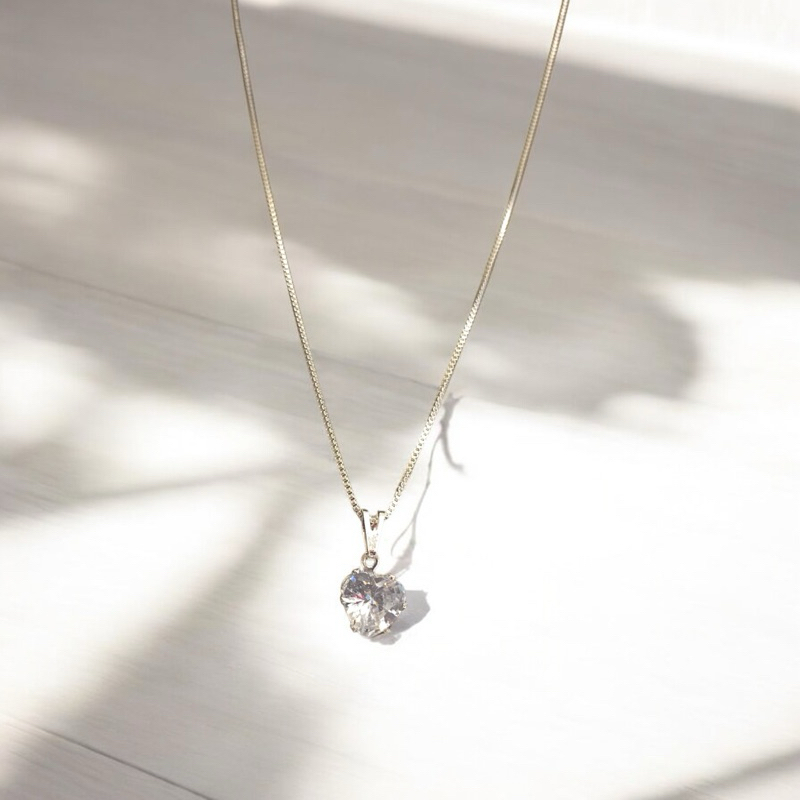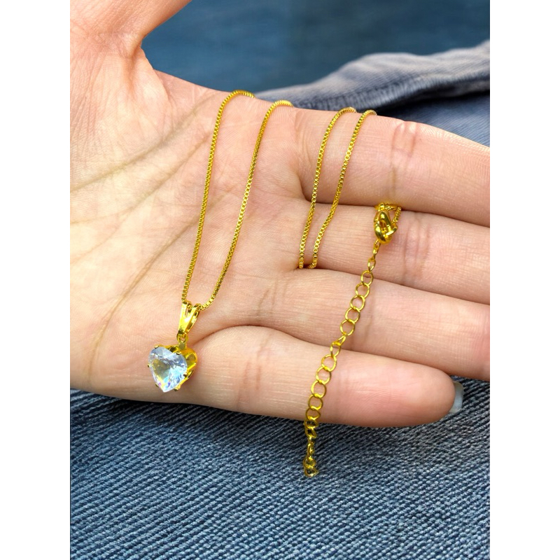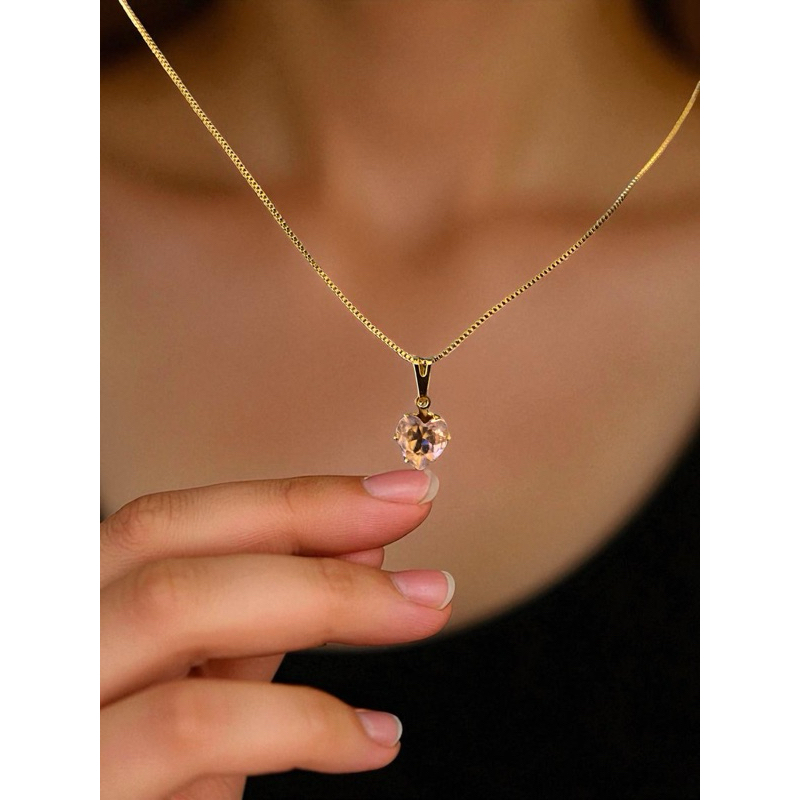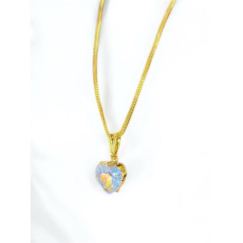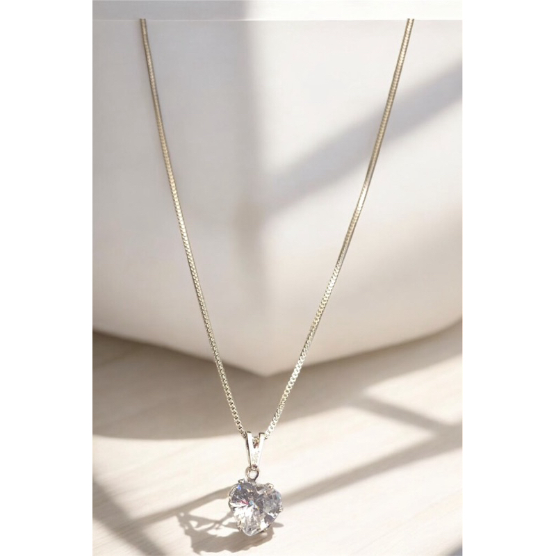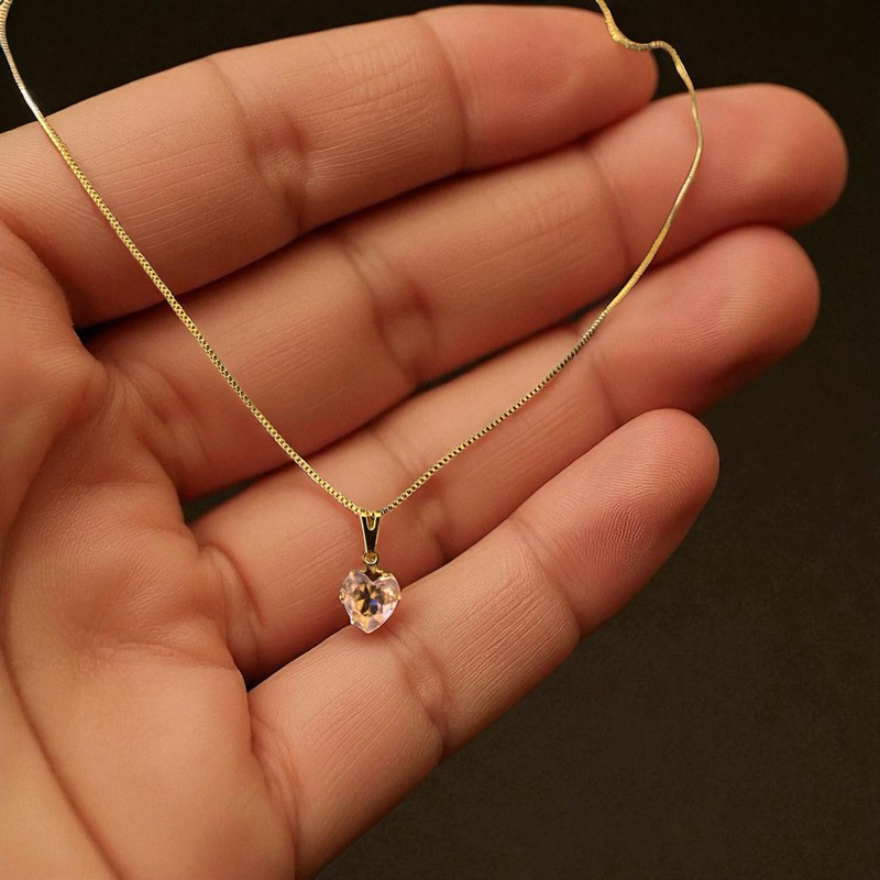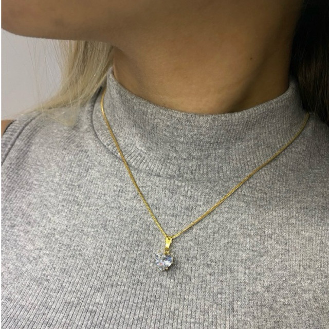 Colar Corrente Prata 925 Ponto de Luz coração Ouro 18K