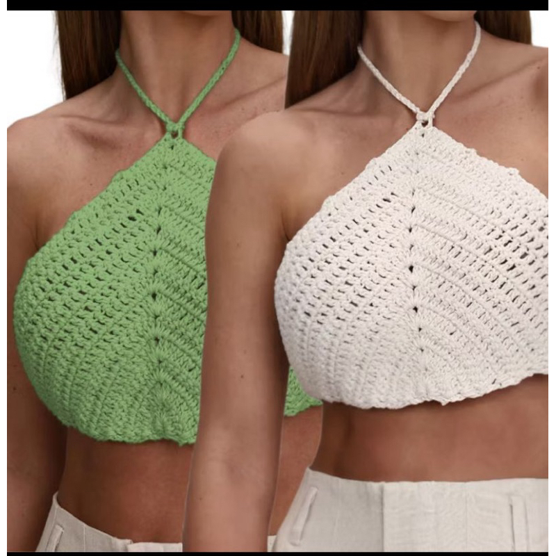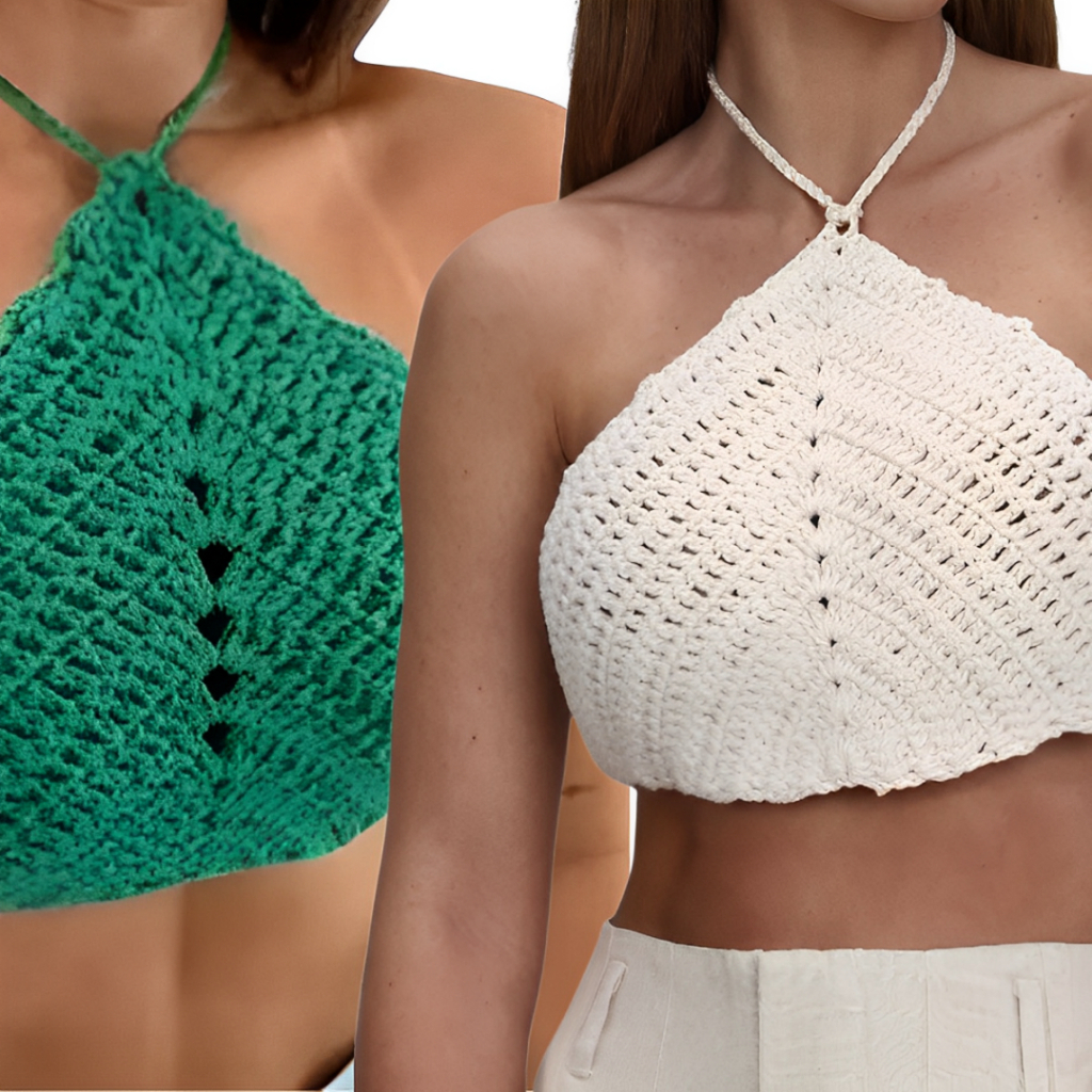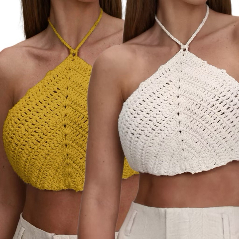 Kit 2 Cropped Top de Crochê Feminino Triangular – Costas Nua, Moda Praia Verão, Artesanal Premium