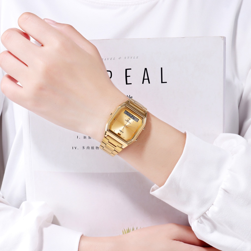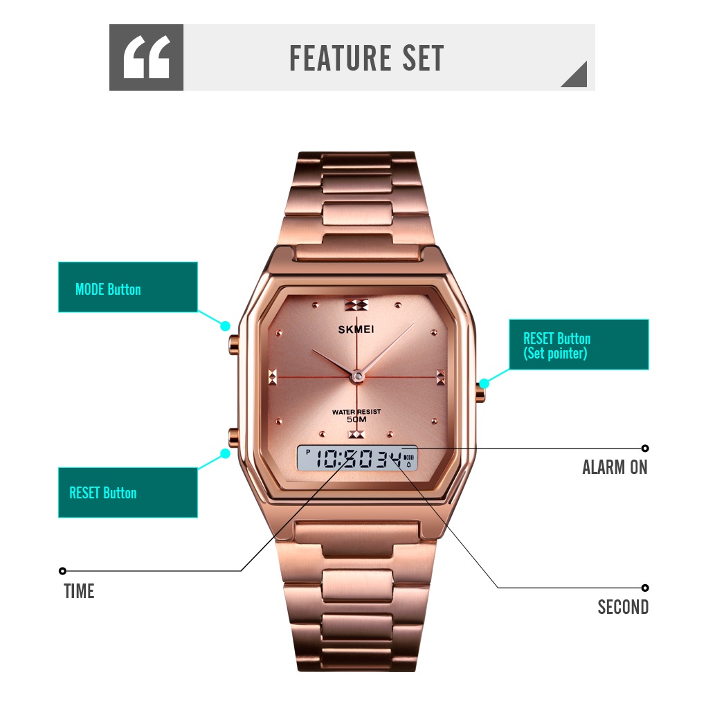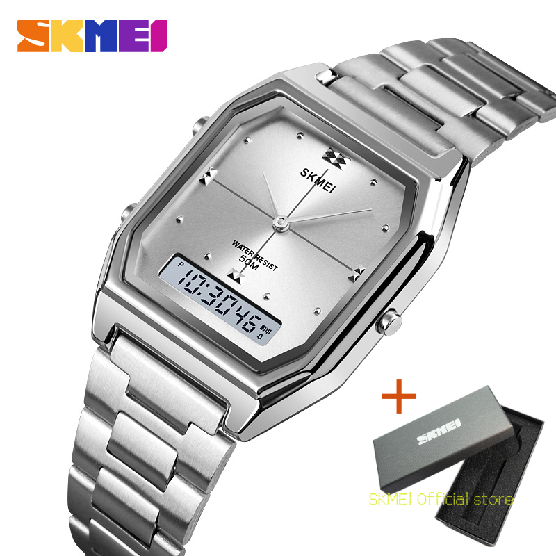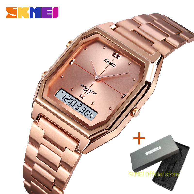 SKMEI 1612 3 Time Fashion Mens Clock Relógio De Pulso Digital Crono De Aço Inoxidável Homens Mulheres À Prova D'água Hora De Alarme Macho Feminino