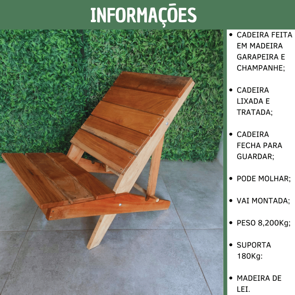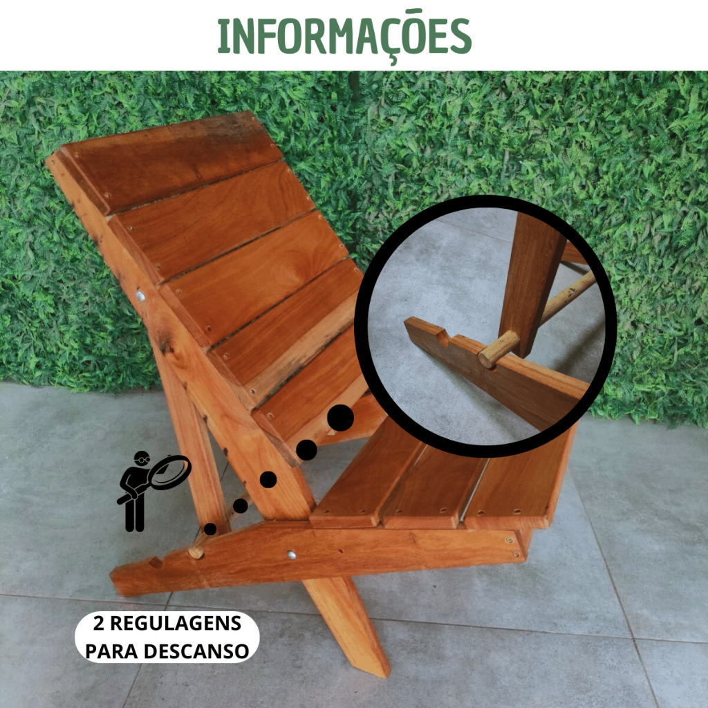 Cadeira Madeira Dobravel Jardim Reclinavel Piscina Praia