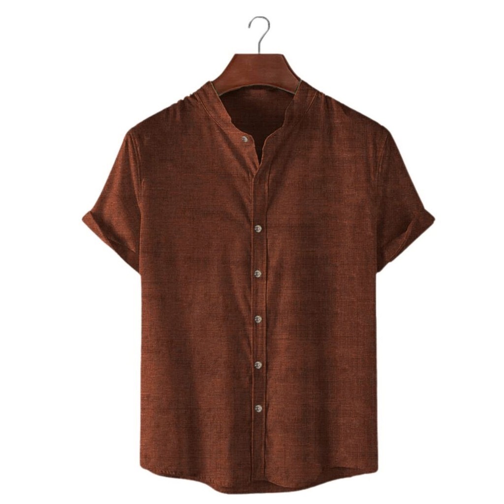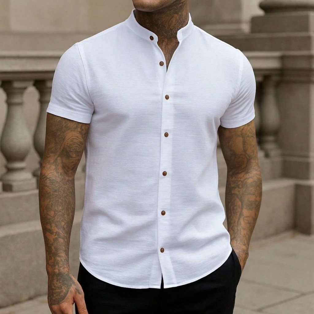 Camisa Social Masculina Linho Gola Padre Manga Curta Premium