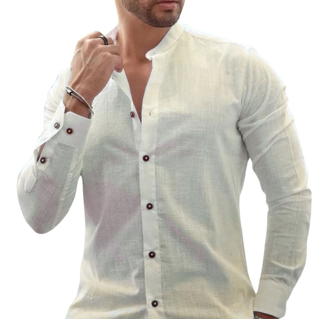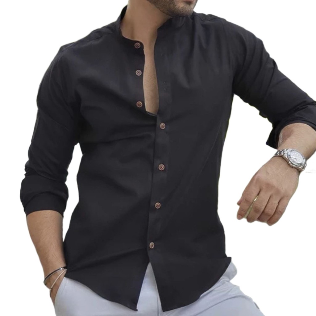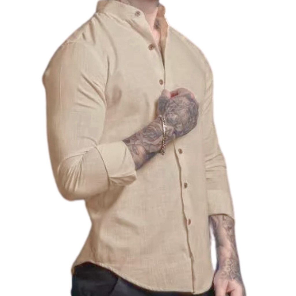 Camisa Social Masculina Linho Gola Padre Manga Longa Premium