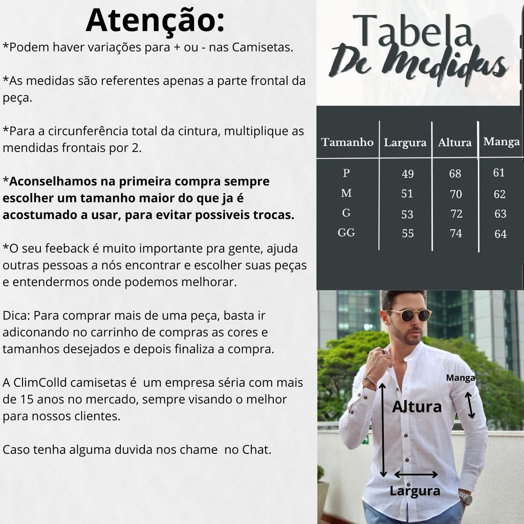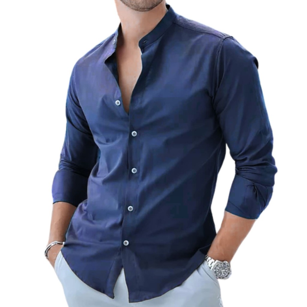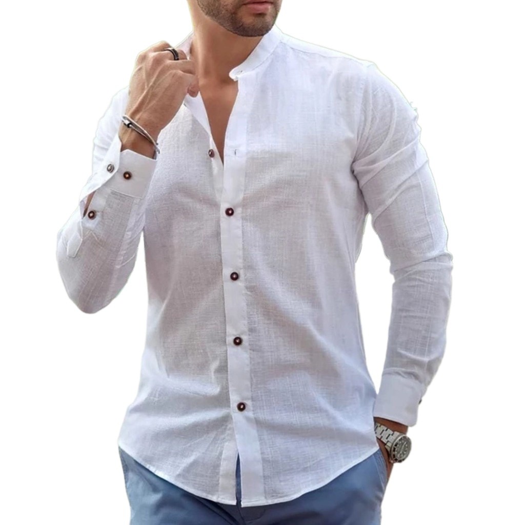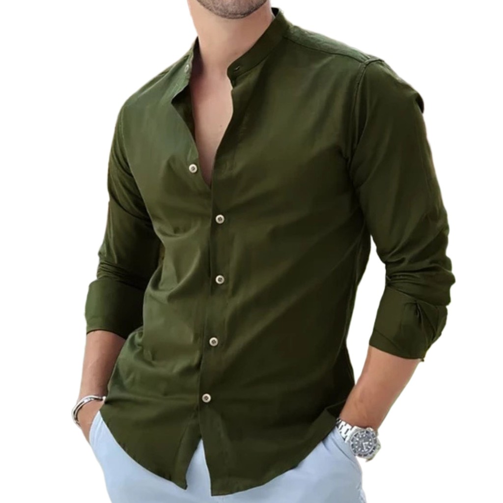 Camisa Social Masculina Linho Gola Padre Manga Longa Premium