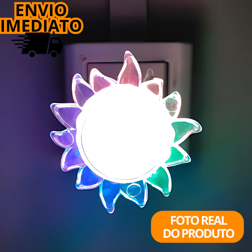 Kit 4 Luminária Led Abajur Infantil Sol Com Botão LIGA/DESLIGA Tomada Bivolt 127/220v Quarto Sala Casa Colorido