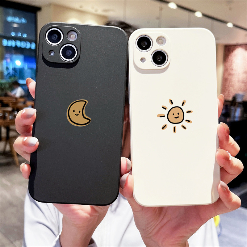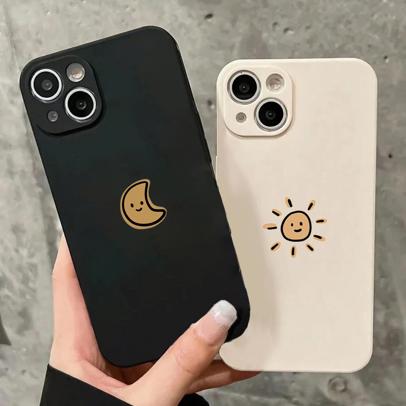 Bonito Dos Desenhos Animados Sol Lua Caso De Telefone Para iPhone 16 15 14 13 12 11 Pro Max XR X XS 14 15 7 8 Plus SE2 M