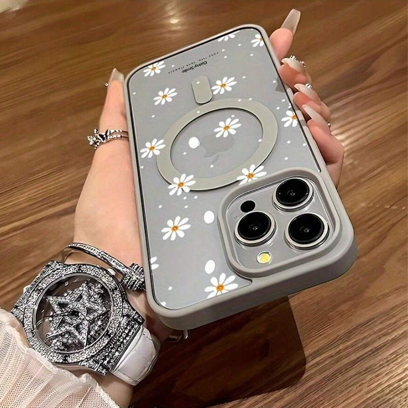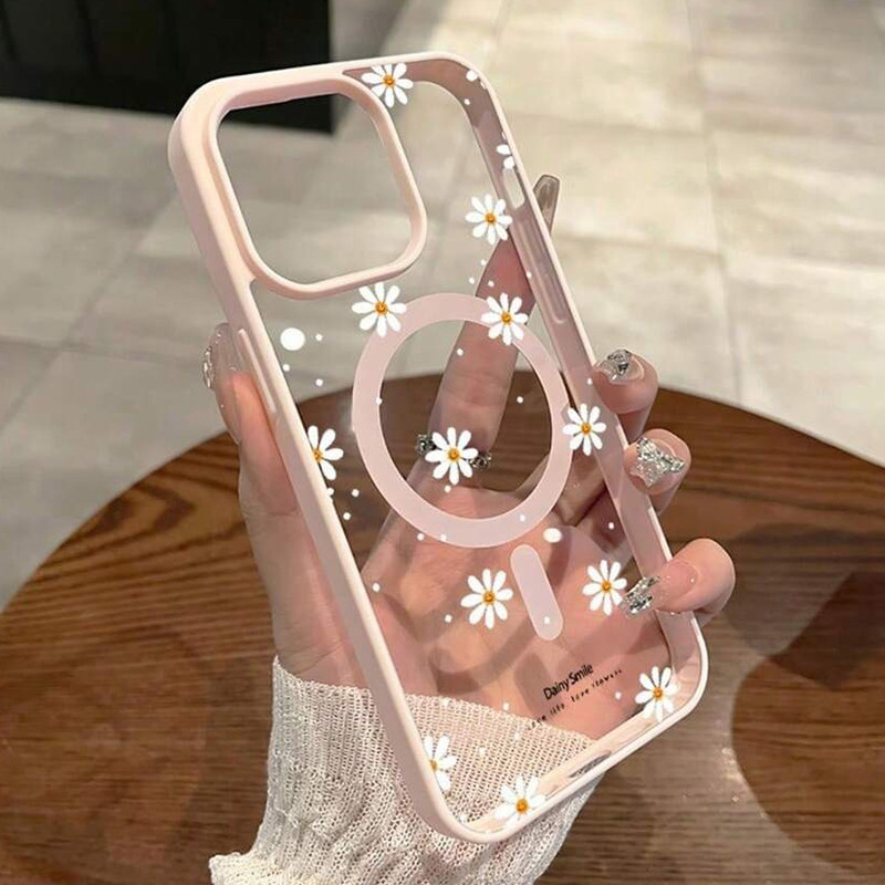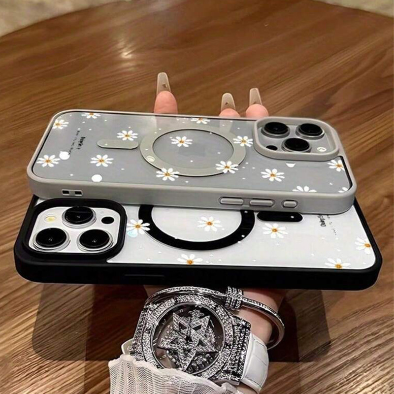 Tela Cheia Margarida Flor Caso Magnético Para iPhone 17 16 15 14 13 12 11 Pro Max Plus 16E Fosco Capa Clara