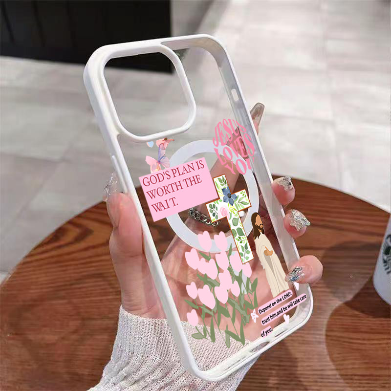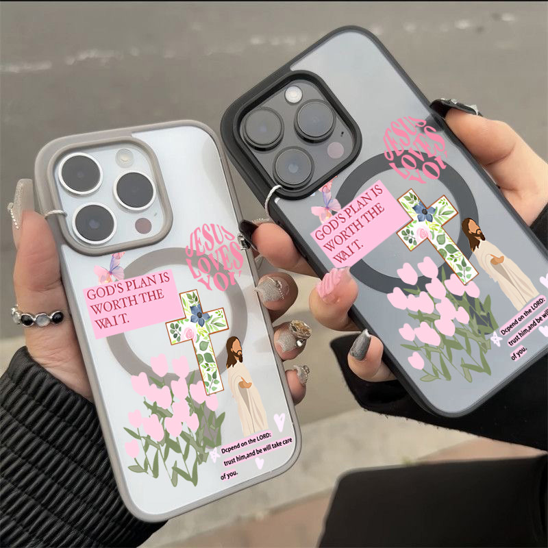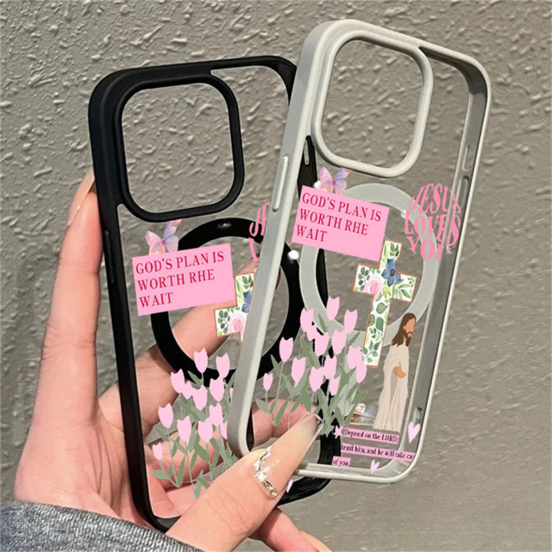 Capa Magnética Artística De Flor De Jesus Para iPhone 17 AIR 16 15 14 13 12 11 Pro Max Plus 16E Transparente Fosca