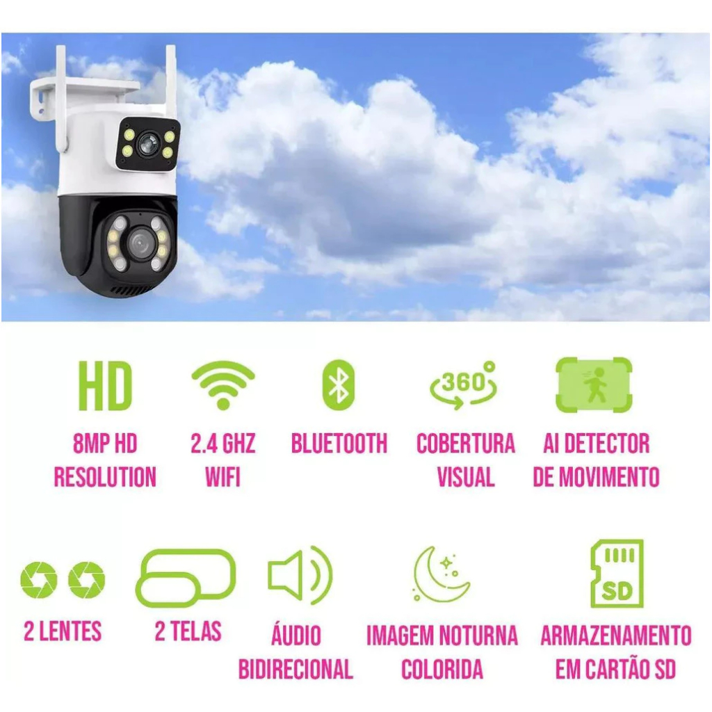 Câmera De Segurança Externa IP Wifi Lente Dupla App Yousee Ip66 360 Sensor Visão Noturna