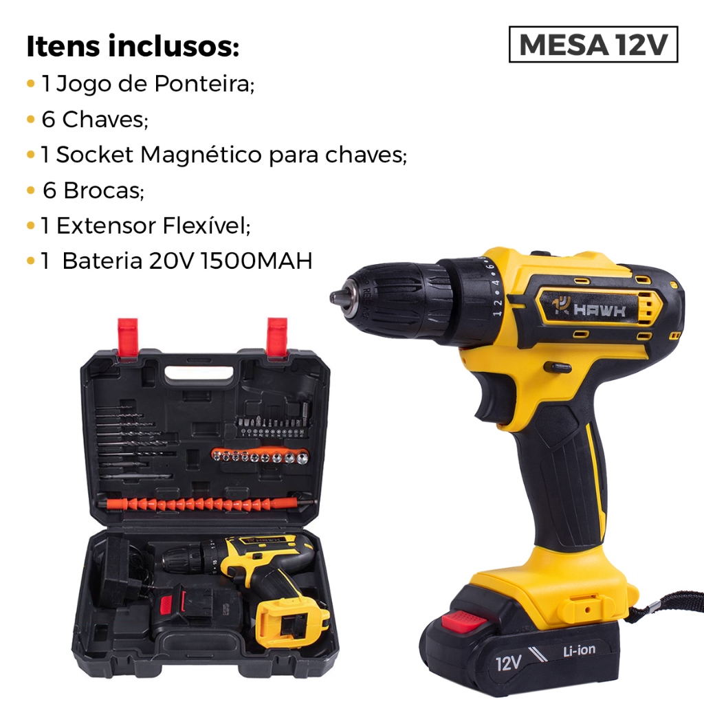 Parafusadeira a bateria Furadeira sem Fio 3/8" 12v 20v com Maleta de Acessórios