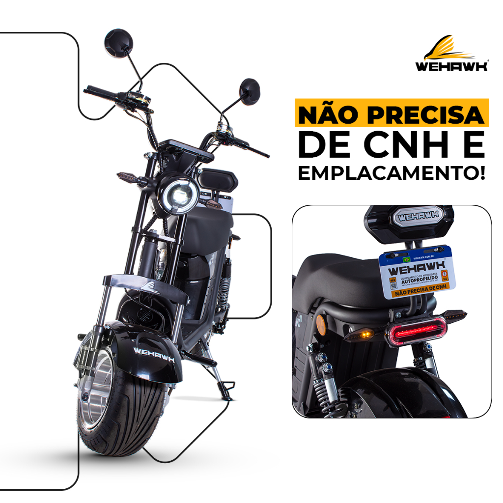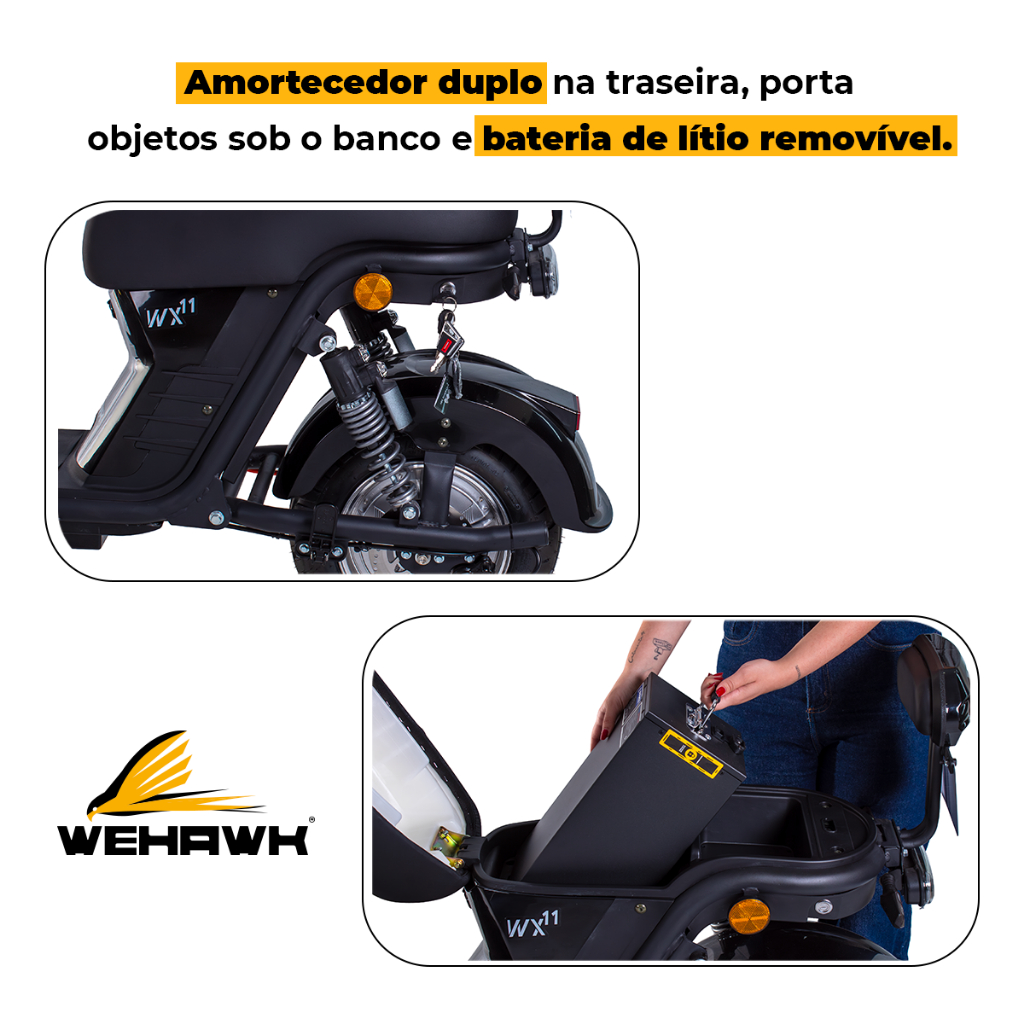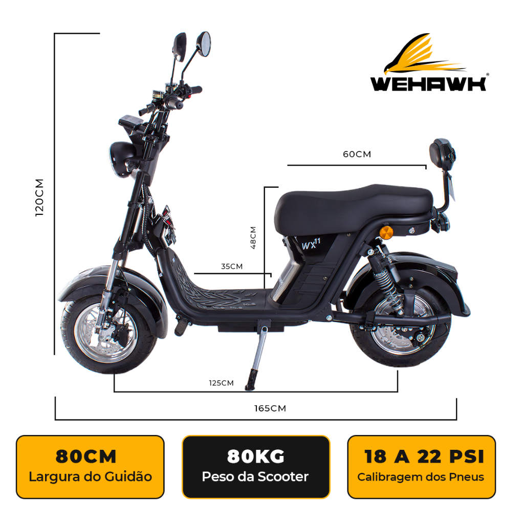 Scooter Elétrica 1000W Bateria 20Ah 60V WeHawk WX-11 2 Lugares e Cores Diversas