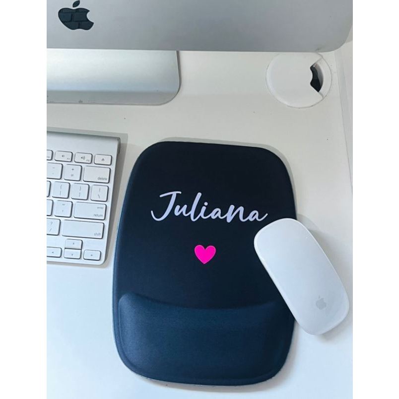 Mouse pad Preto Personalizado com Nome e Coração Escolha o Modelo