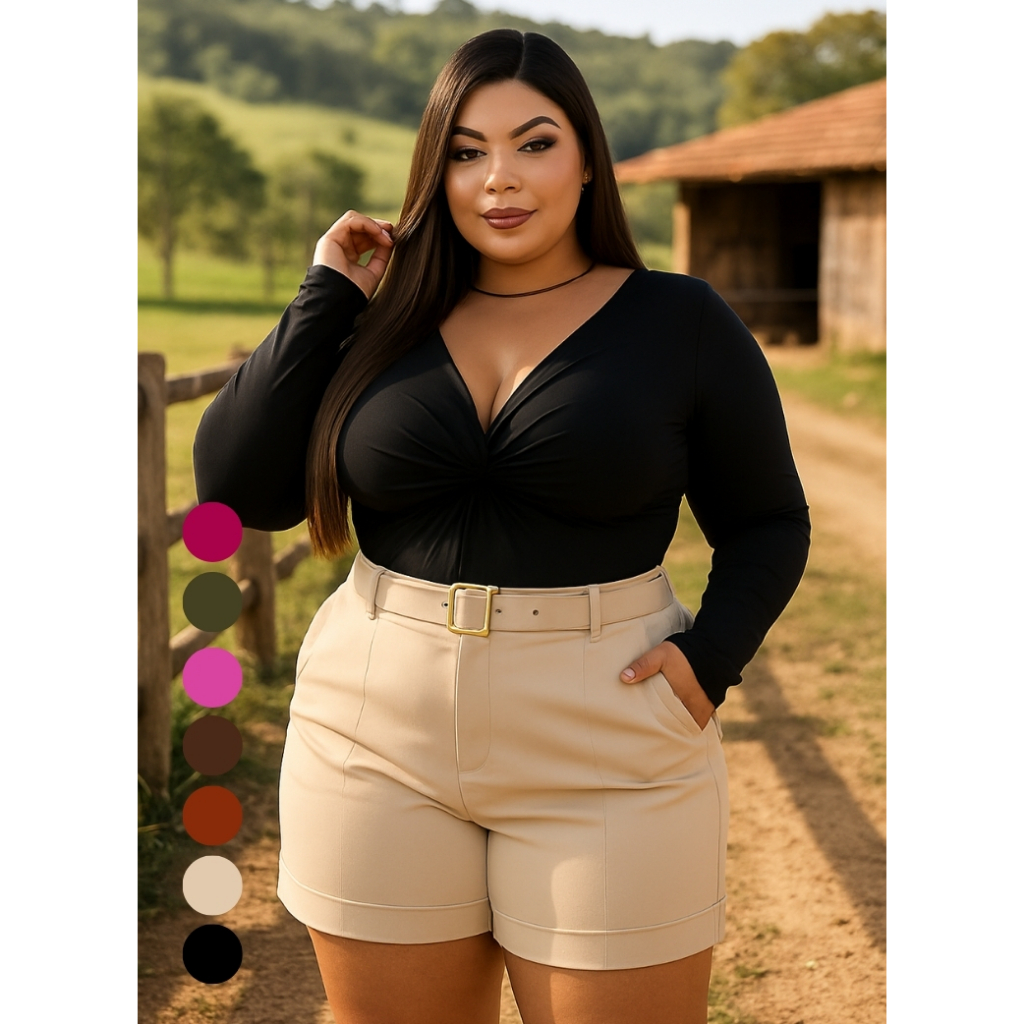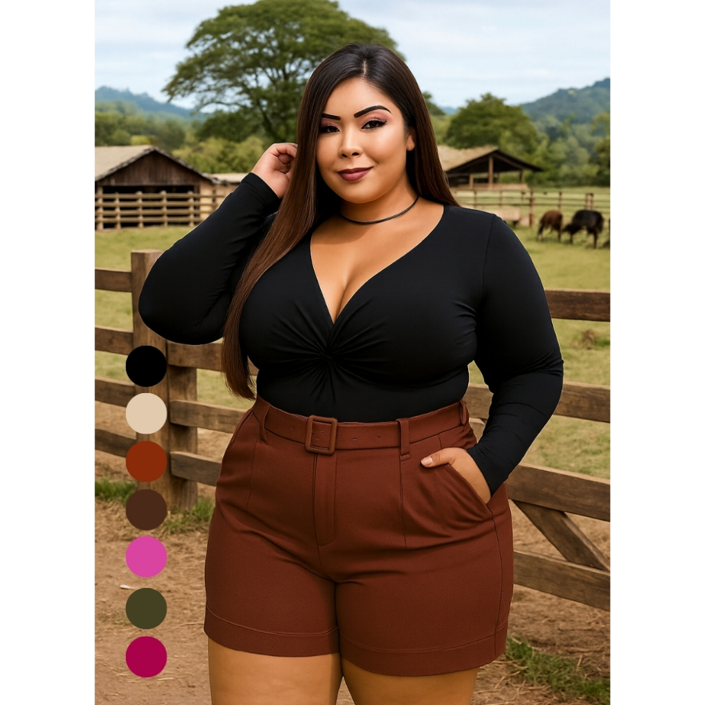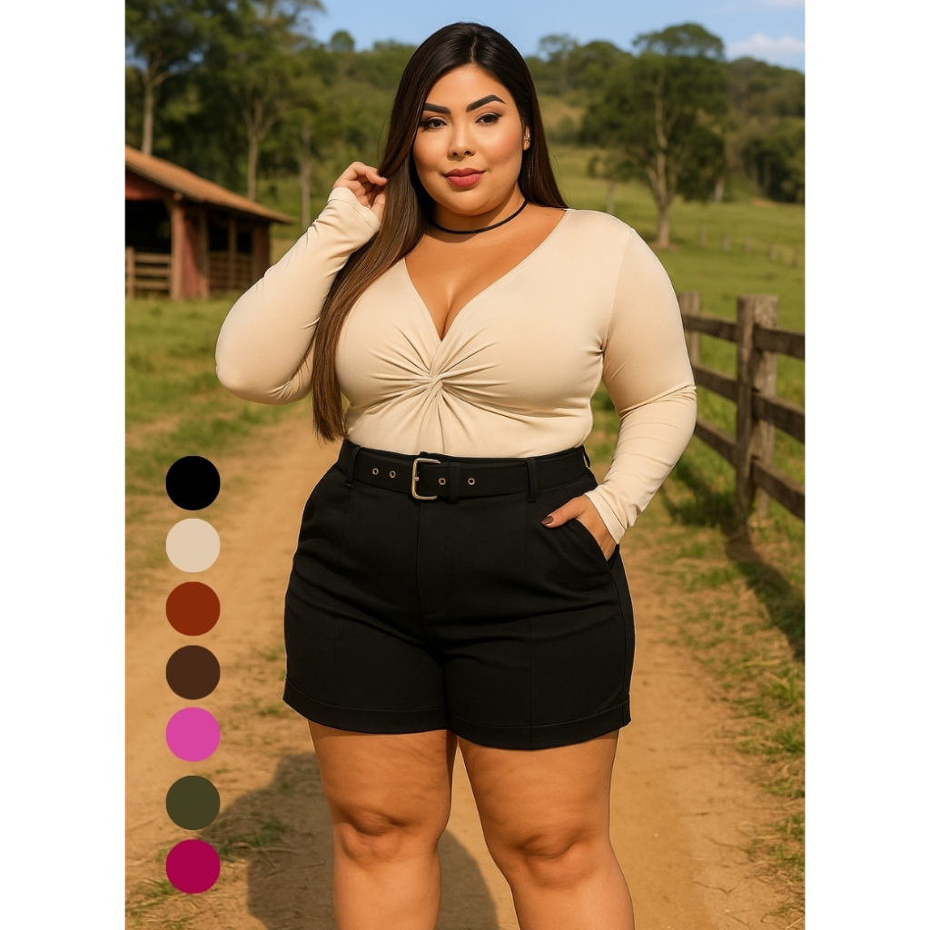 Short Feminino Plus Size Alfaiataria Textura Suave Sem Transparência Caimento Impecável 7 Cores