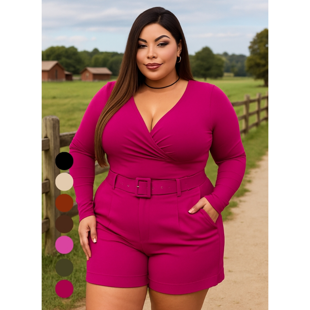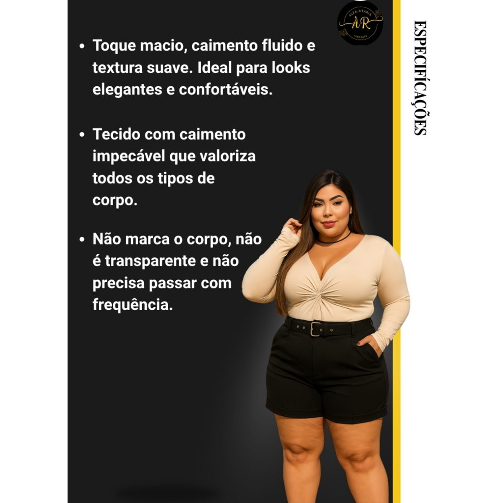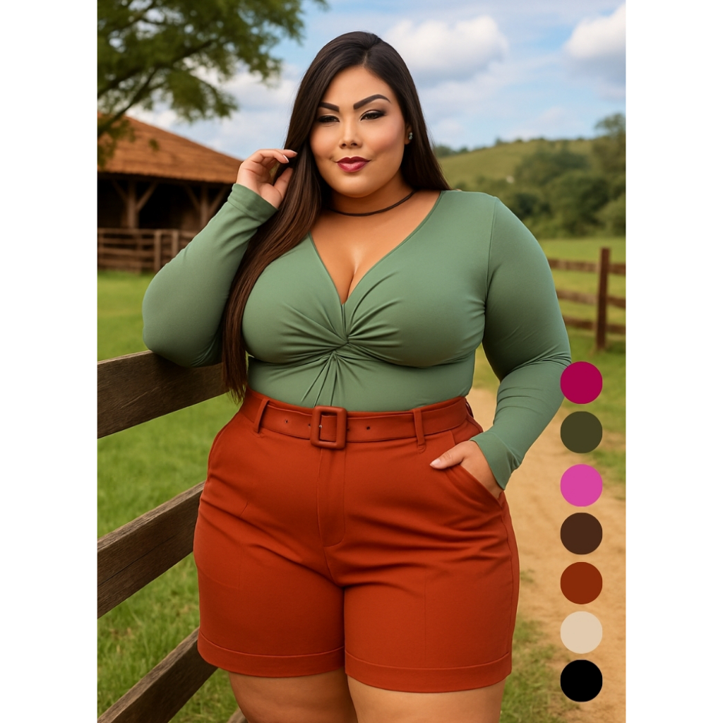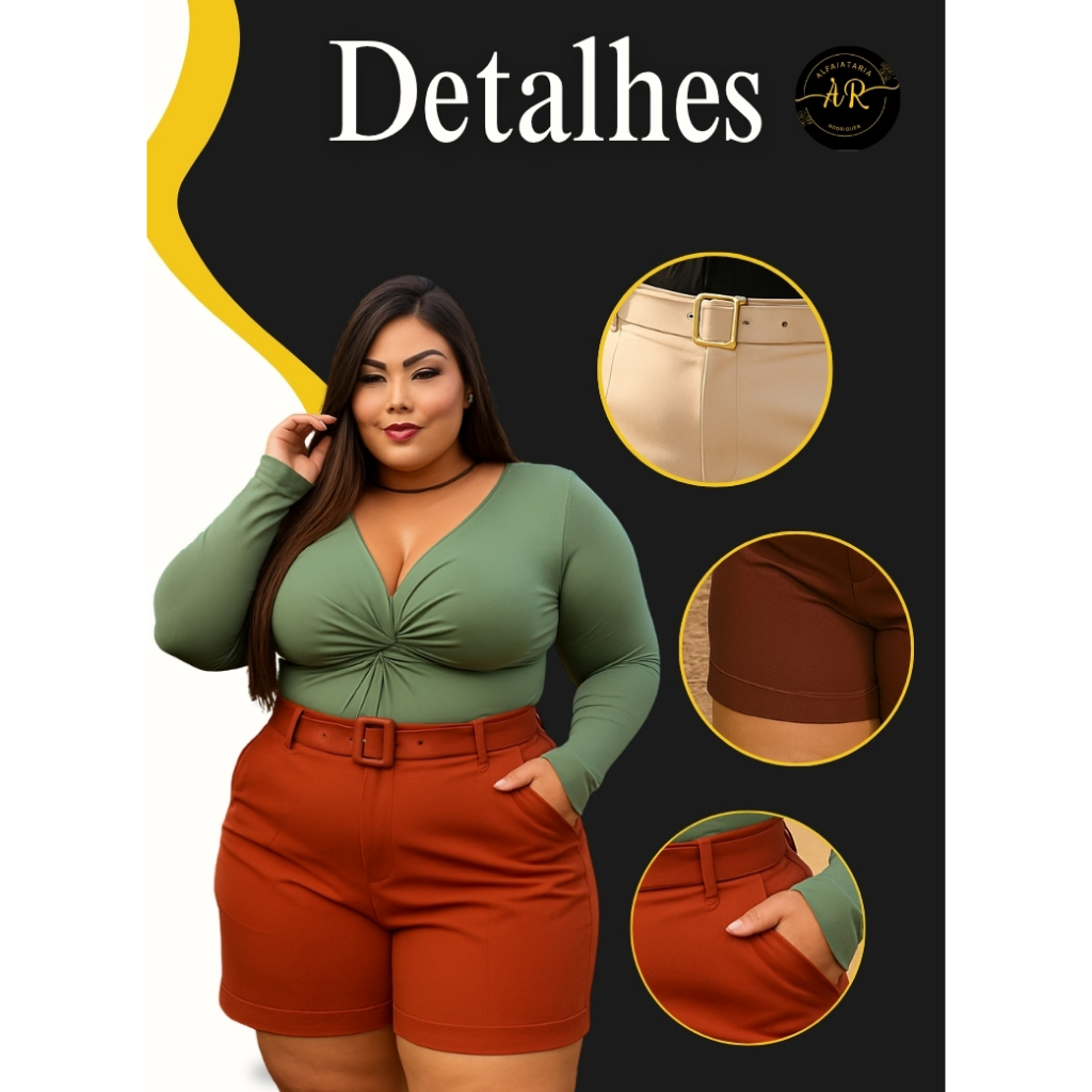 Short Feminino Plus Size Alfaiataria Textura Suave Sem Transparência Caimento Impecável 7 Cores
