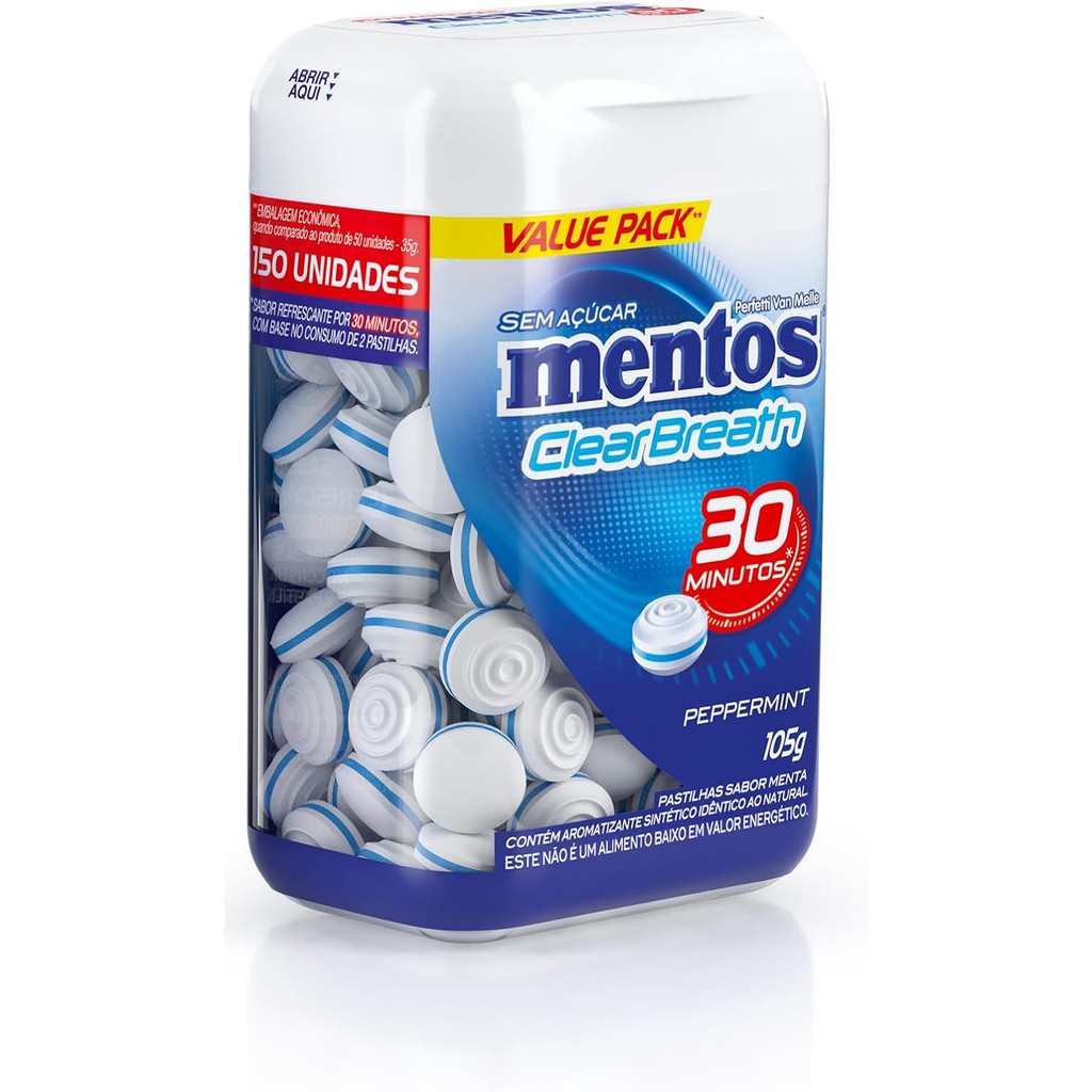 Pastilhas Mentos Kiss Sabor Peppermint Sem Açúcar 105g (Pote Com 150 unidades)