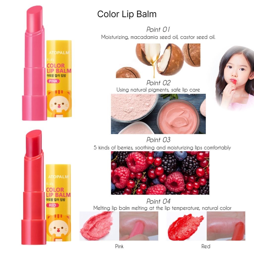 ATOPALM Bálsamo para lábios coloridos para crianças (rosa/vermelho), 3.3g