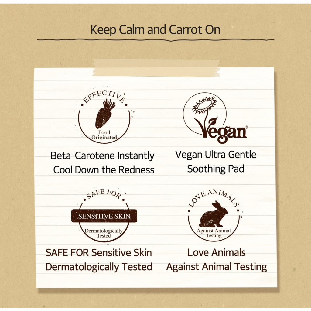 SKINFOOD Cenoura caroteno calmante almofada de água (8,81 onças) 60 folhas- RELIMENTO DE RELITORIA SLUILING, VEGAN, CRUELTIDA, Dermatologicamente testada, 250g