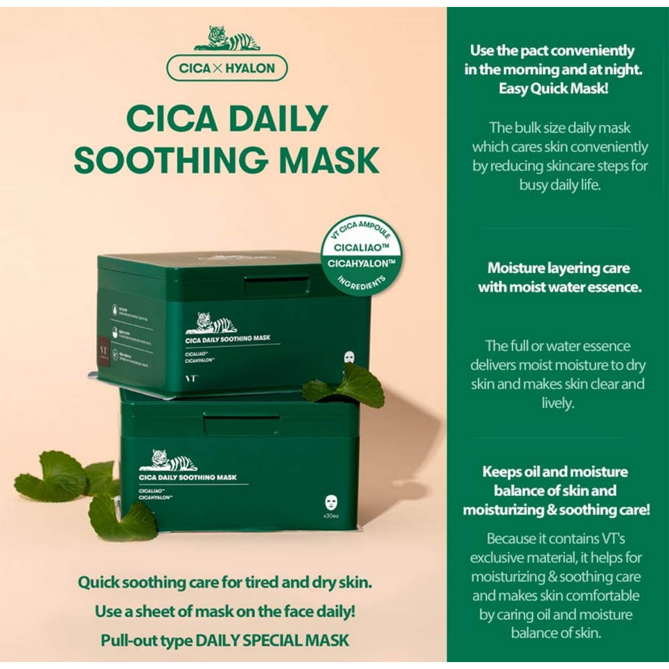 VT COSMETICS Máscara Calmante Diária 5 Tipos (Pro Cica / Vital / Colágeno / Reti-A / Cica Exossoma)