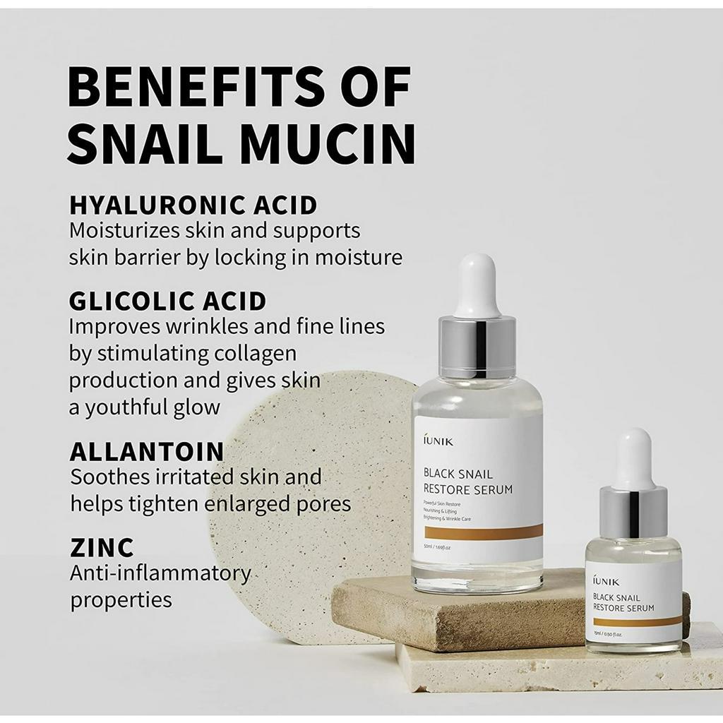 IUNIK Soro De Restauração De Caracol Preto , 70 % Mucin , Poderoso Da Pele , Nutrição , Elevação , Cuidados Com As Rugas, 50ml