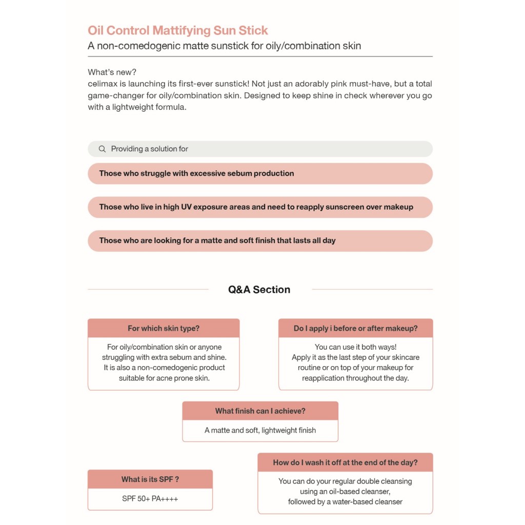 CELIMAX Oil Control Mattifying Sun Stick SPF/PA++++ 50+, 19g