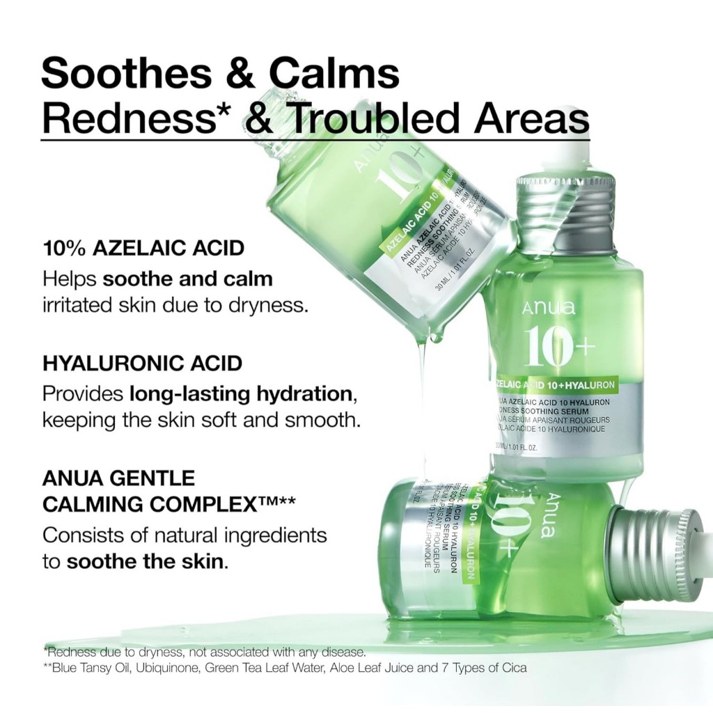 ANUA Azelaic Acid 10 Hyaluron Redness Soothing Serum, 30mL