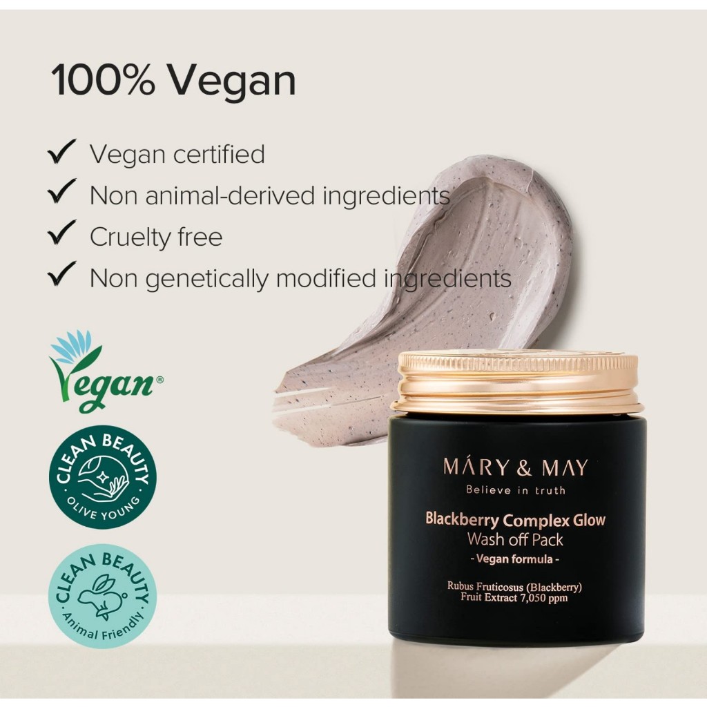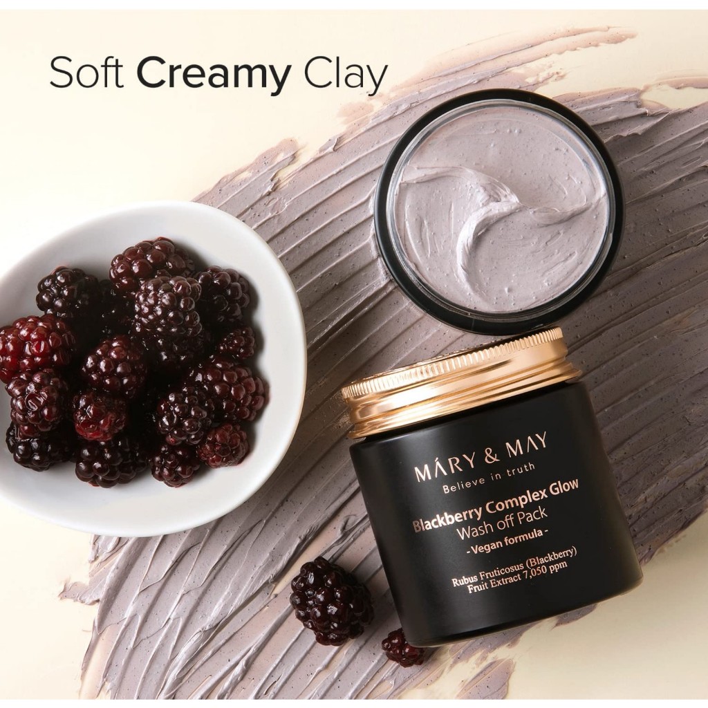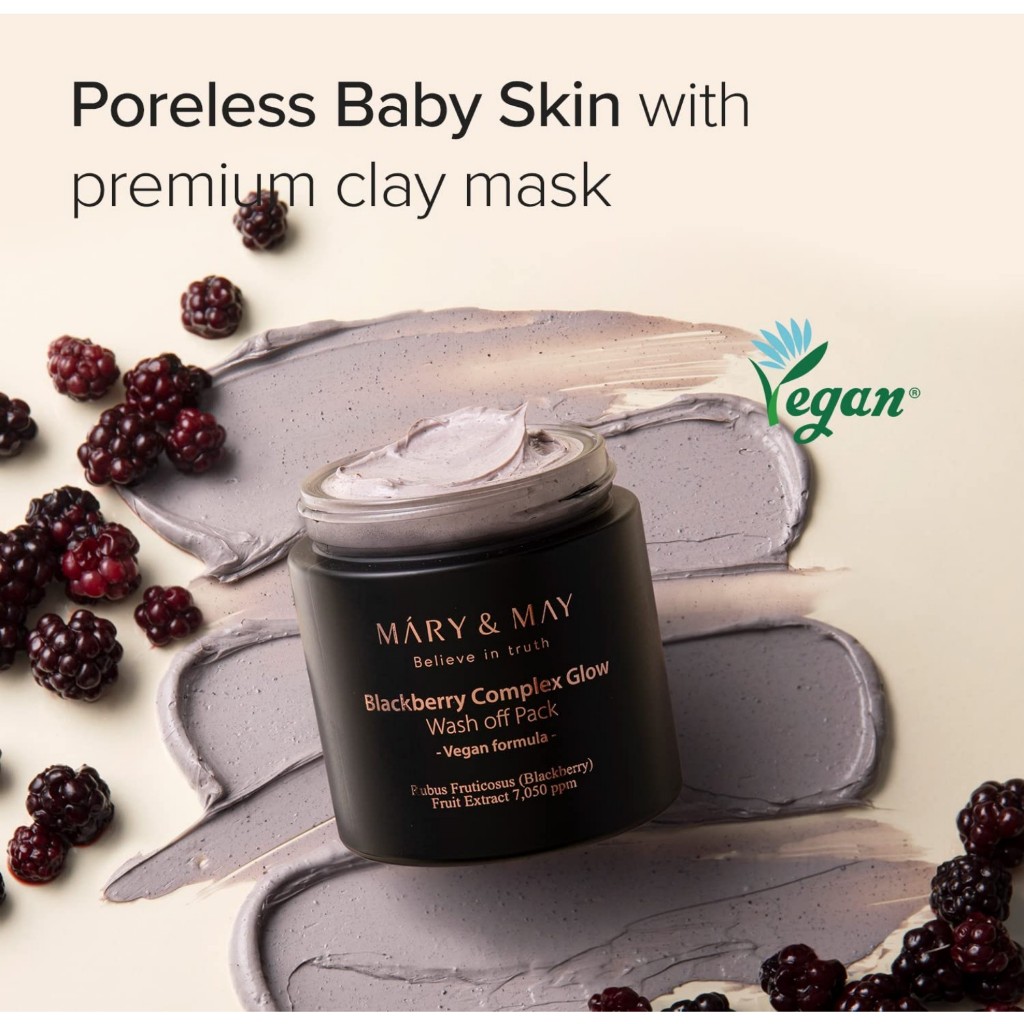 MARY&MAY Máscara de lavagem de brilho do complexo vegano Blackberry, cuidados com o cravo, poros limpos, controle de sebo, hidratação cremosa, máscara de argila, 125g