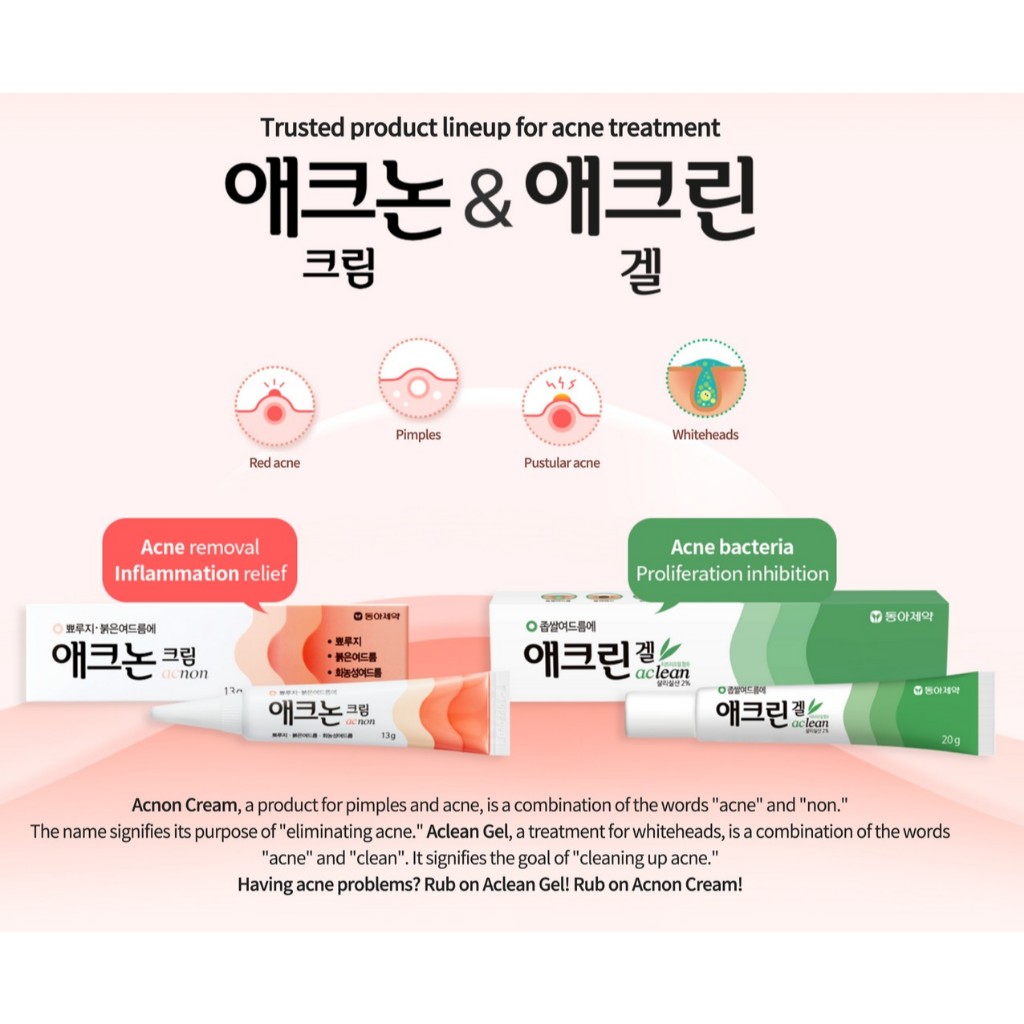 Dong-A Aclean Gel / Acnon Cream 13G, 20g