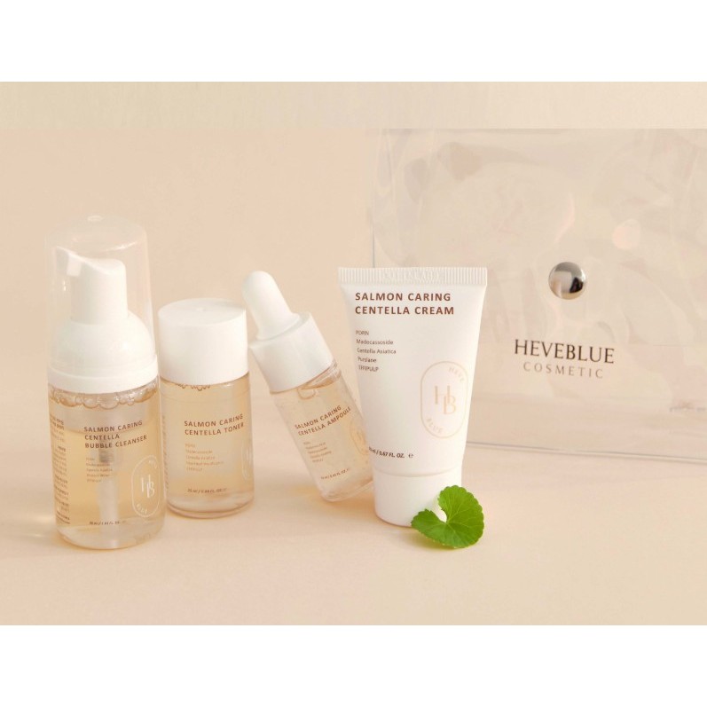 HEVEBLUE SALMON CEULING CENTELLA Special Travel Kit Bag (limpador / creme / ampoule / toner)