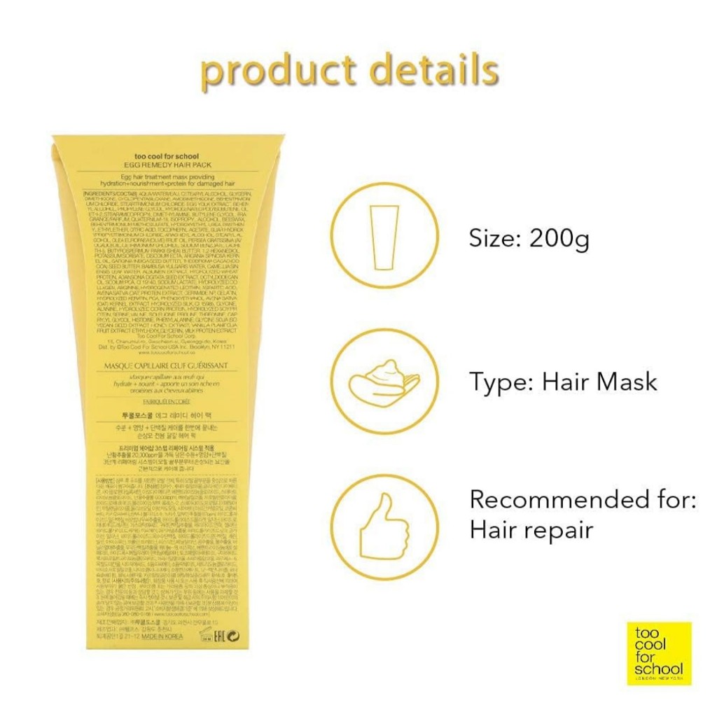 TOO COOL FOR SCHOOL Máscara Capilar Egg Remedy, 200g