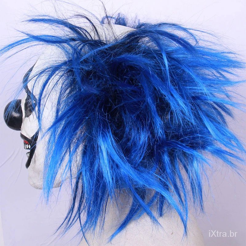 Látex realista cabelo azul máscara palhaço Halloween assombrado casa fantasma chapelaria partido cosplay assustador