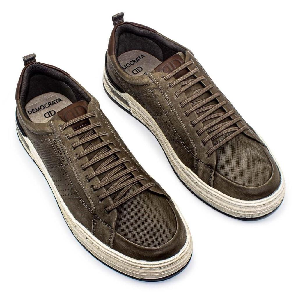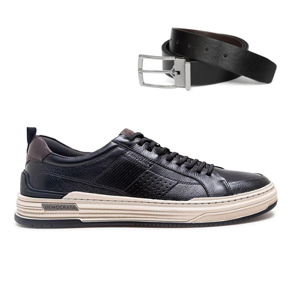 Tênis Democrata Masculino Denim Mike 240601+Cinto Masculino Dupla Face