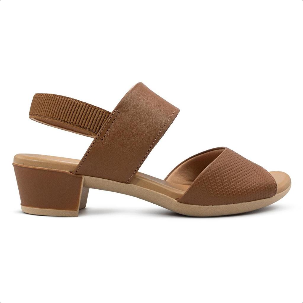 Sandália Usaflex Feminina Couro Salto Bloco Elástico Calcanhar Casual PA02002