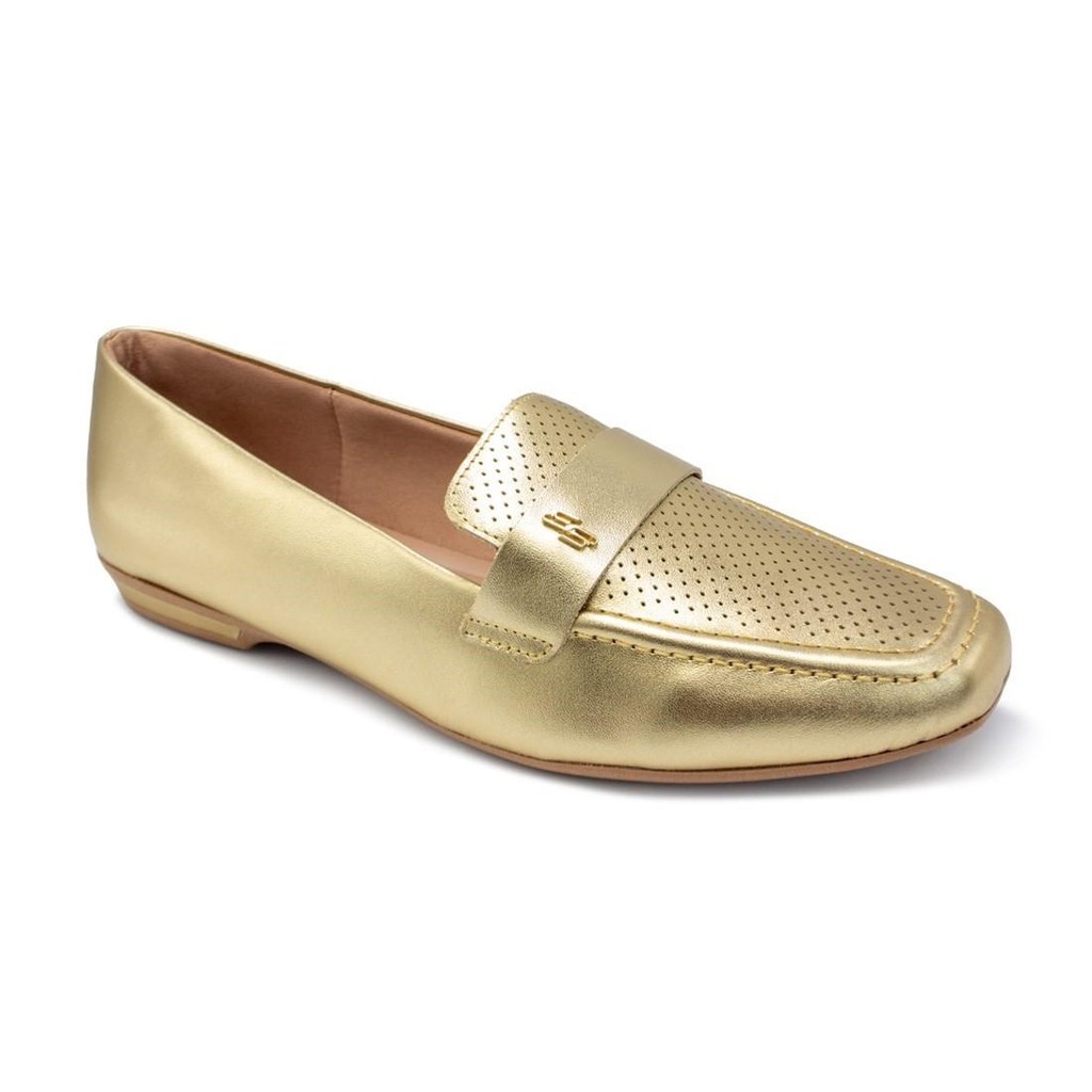 Loafer Usaflex Feminino Couro Salto Bloco Couro Casual