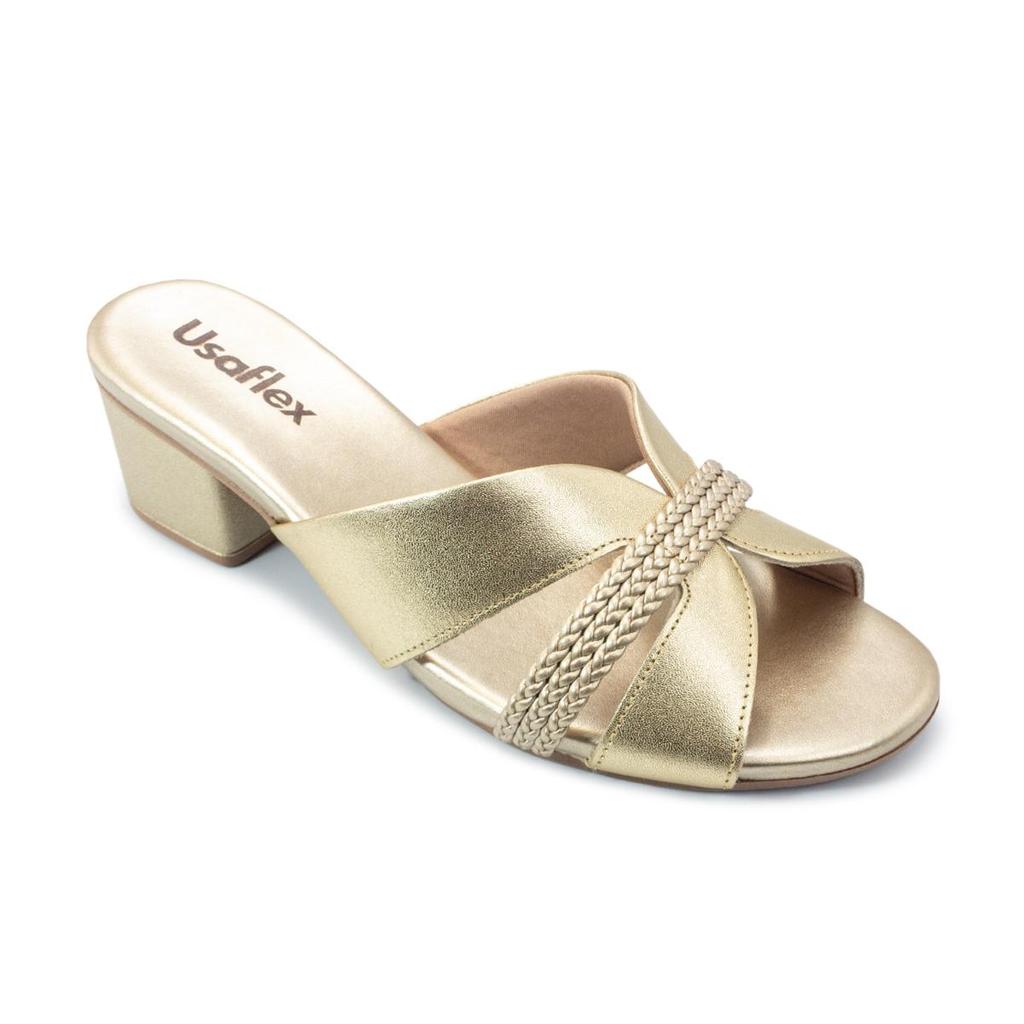 Tamanco Usaflex Feminino Salto Bloco Couro Tira Trançada Casual AE32034
