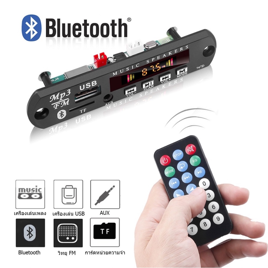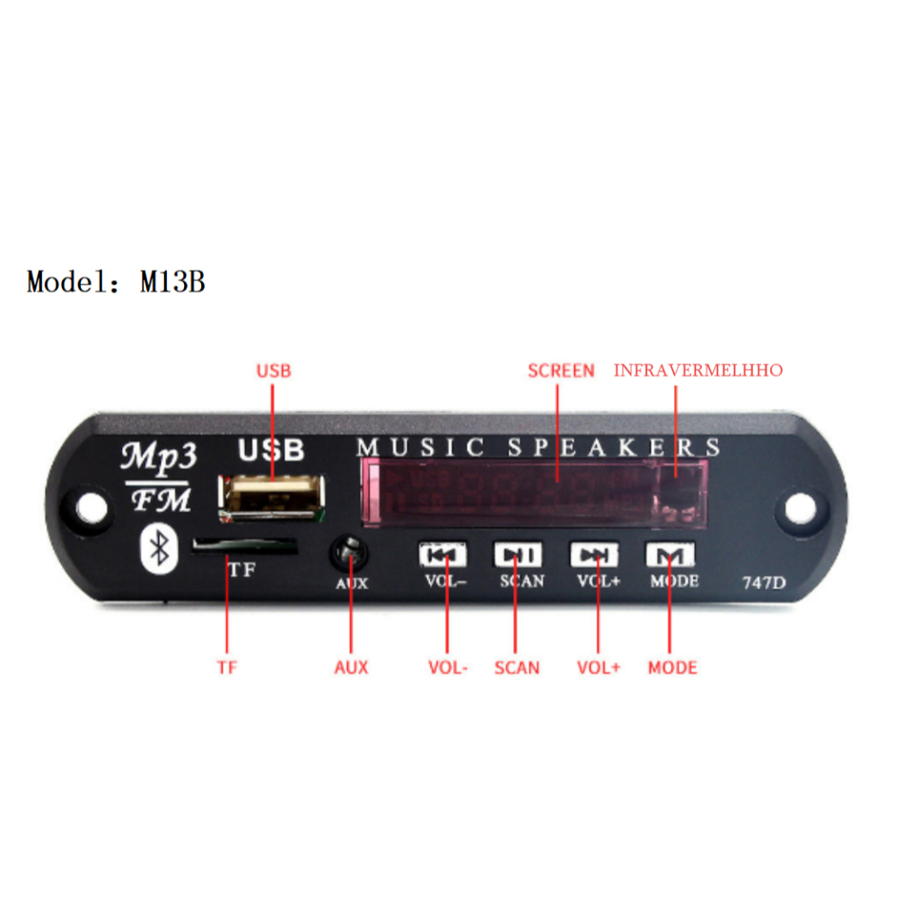 Placa Decodificadora Sem Fio Bluetooth 5.0 DC 6V 12V MP3 WMA Módulo De Áudio USB TF Rádio