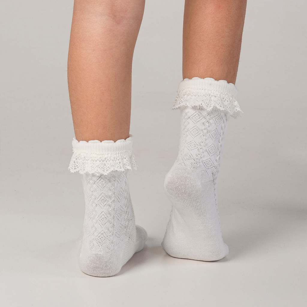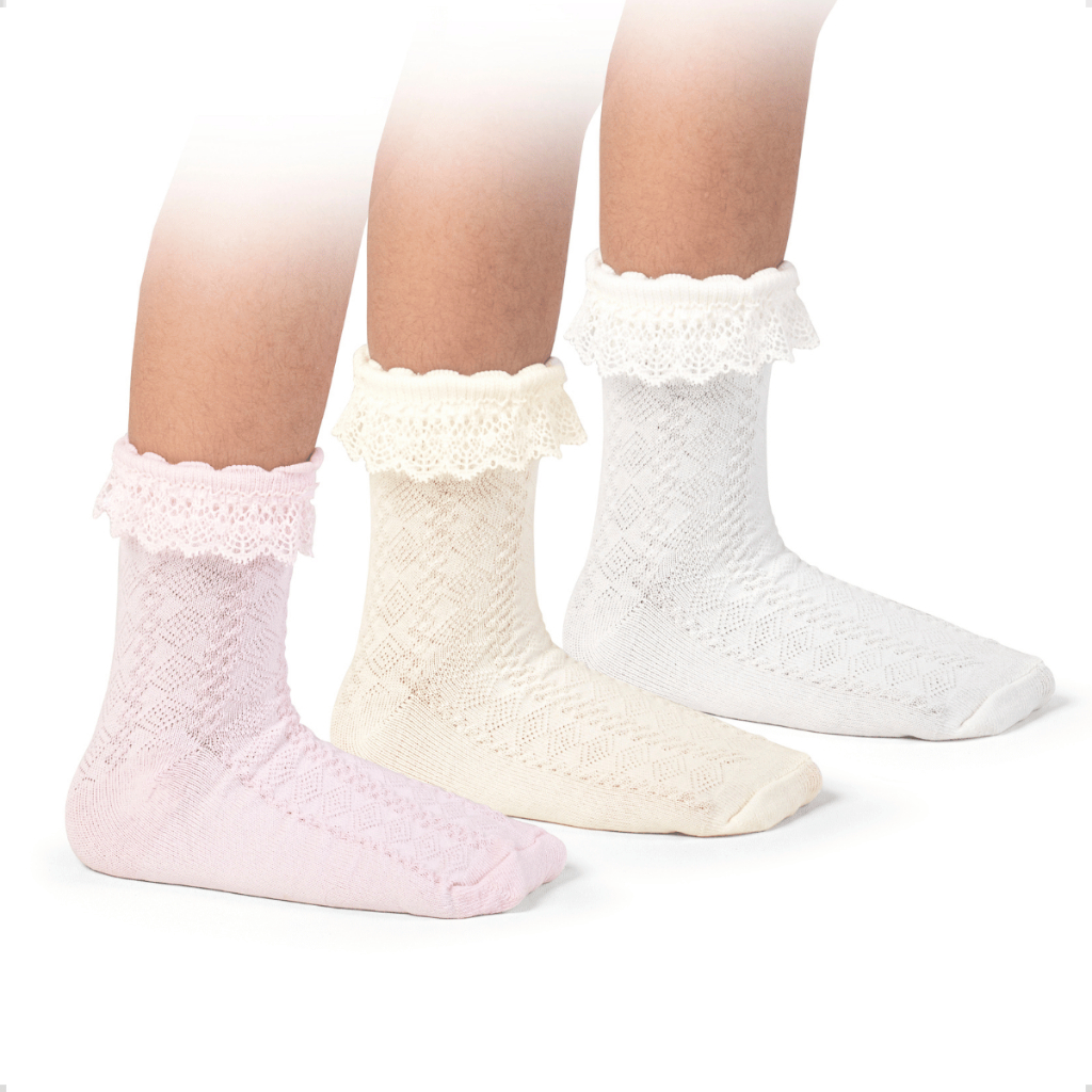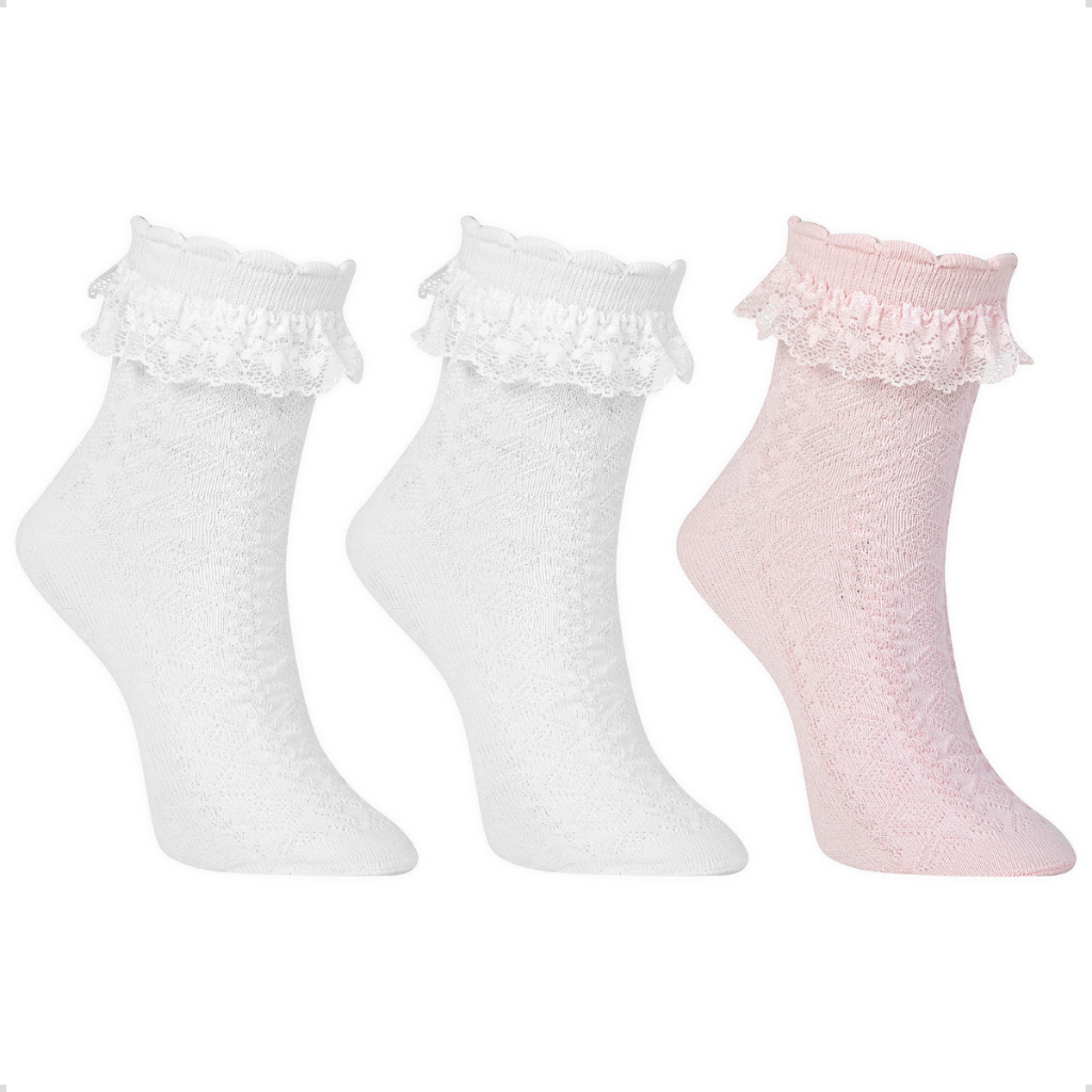 Kit 3 Pares Meia Babado de Renda Algodão Infantil Bebê Cano Médio Menina Rendada Batizado Festa