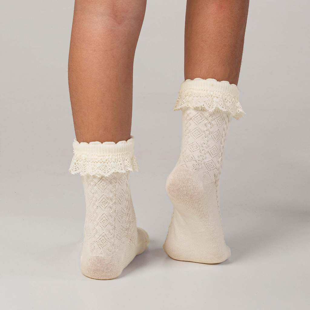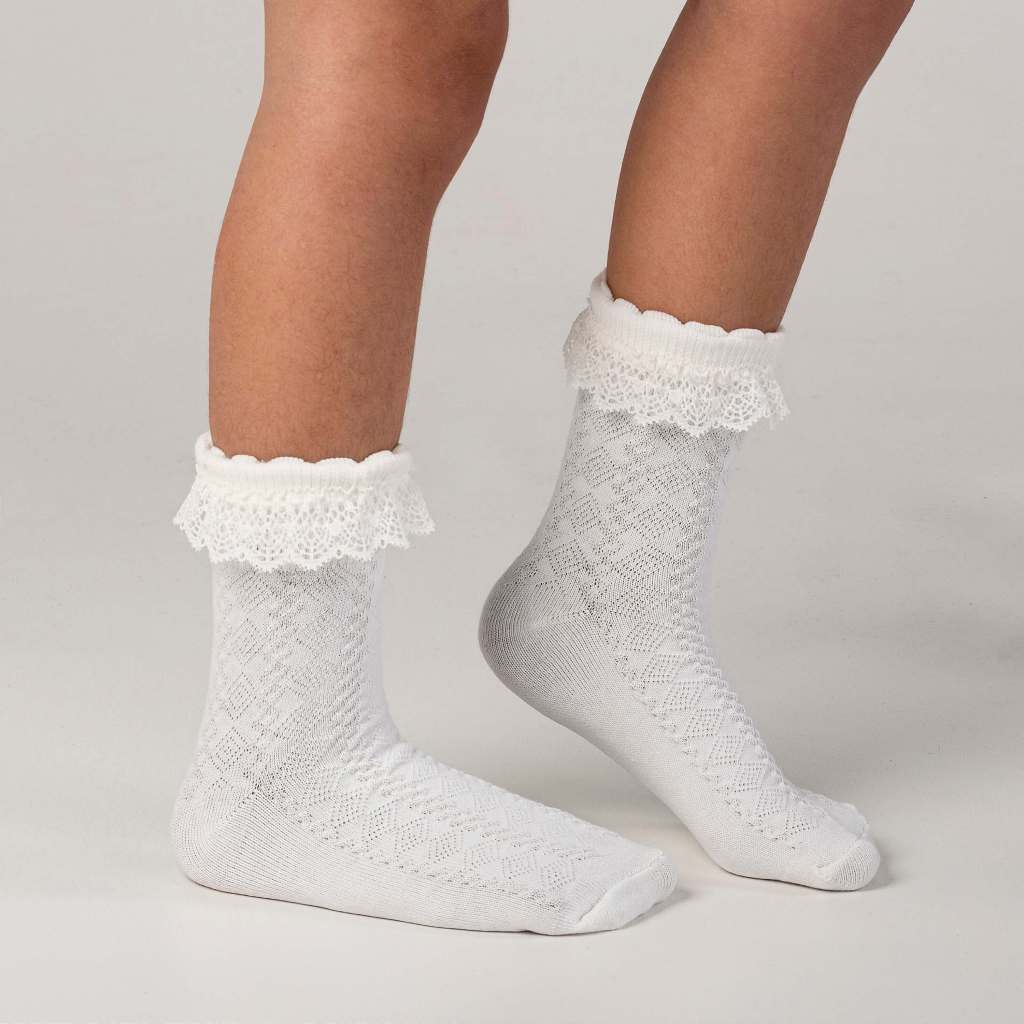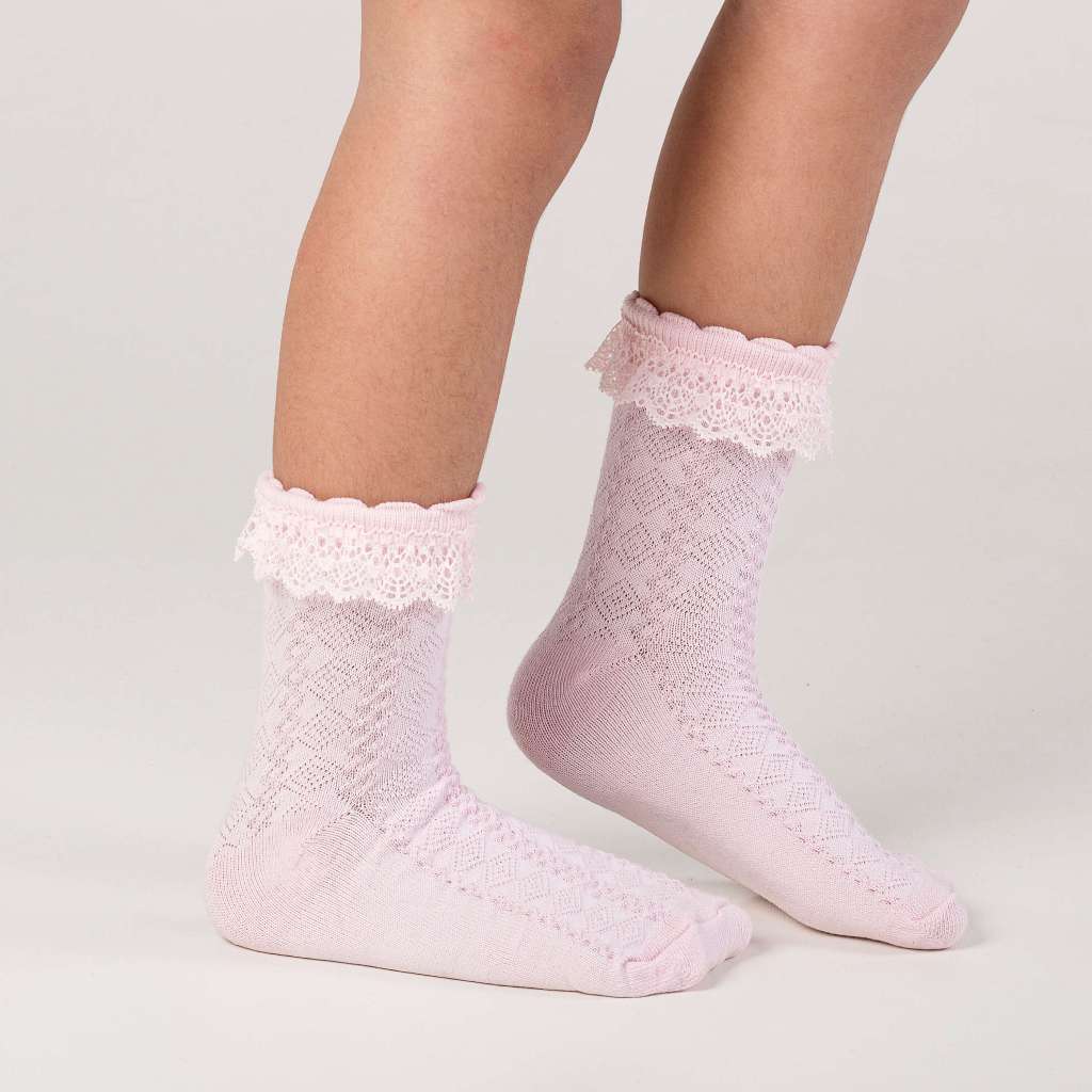Kit 3 Pares Meia Babado de Renda Algodão Infantil Bebê Cano Médio Menina Rendada Batizado Festa