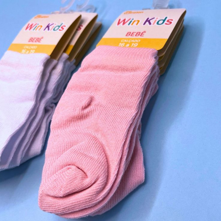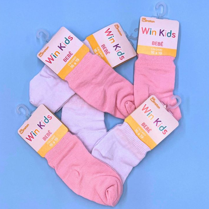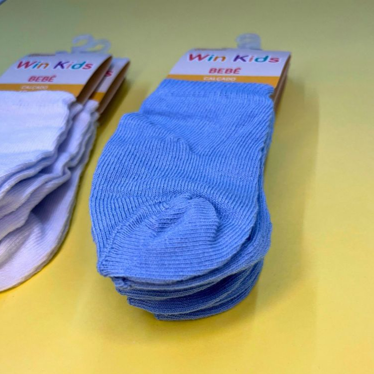 Kit 6 Pares Meia Básica Algodão Bebê Infantil Unissex Menino Menina Soquete Atoalhada Conforto Lisa