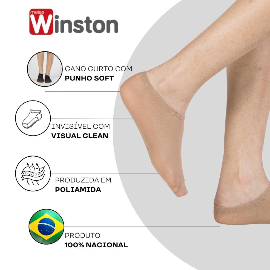 Kit 2 Pares Meia Feminina Sapatilha Fio 40 Poliamida Cano Curto Invisível Clássica Dia a Dia