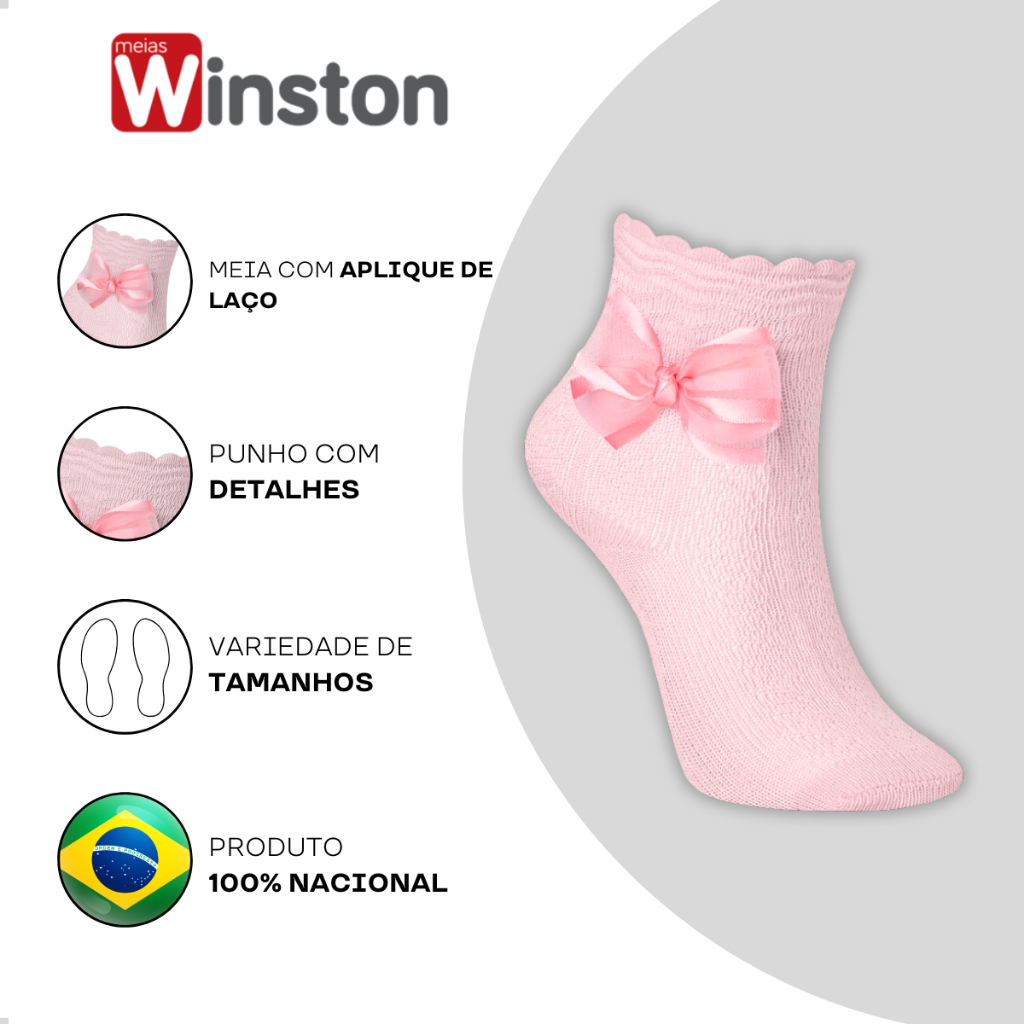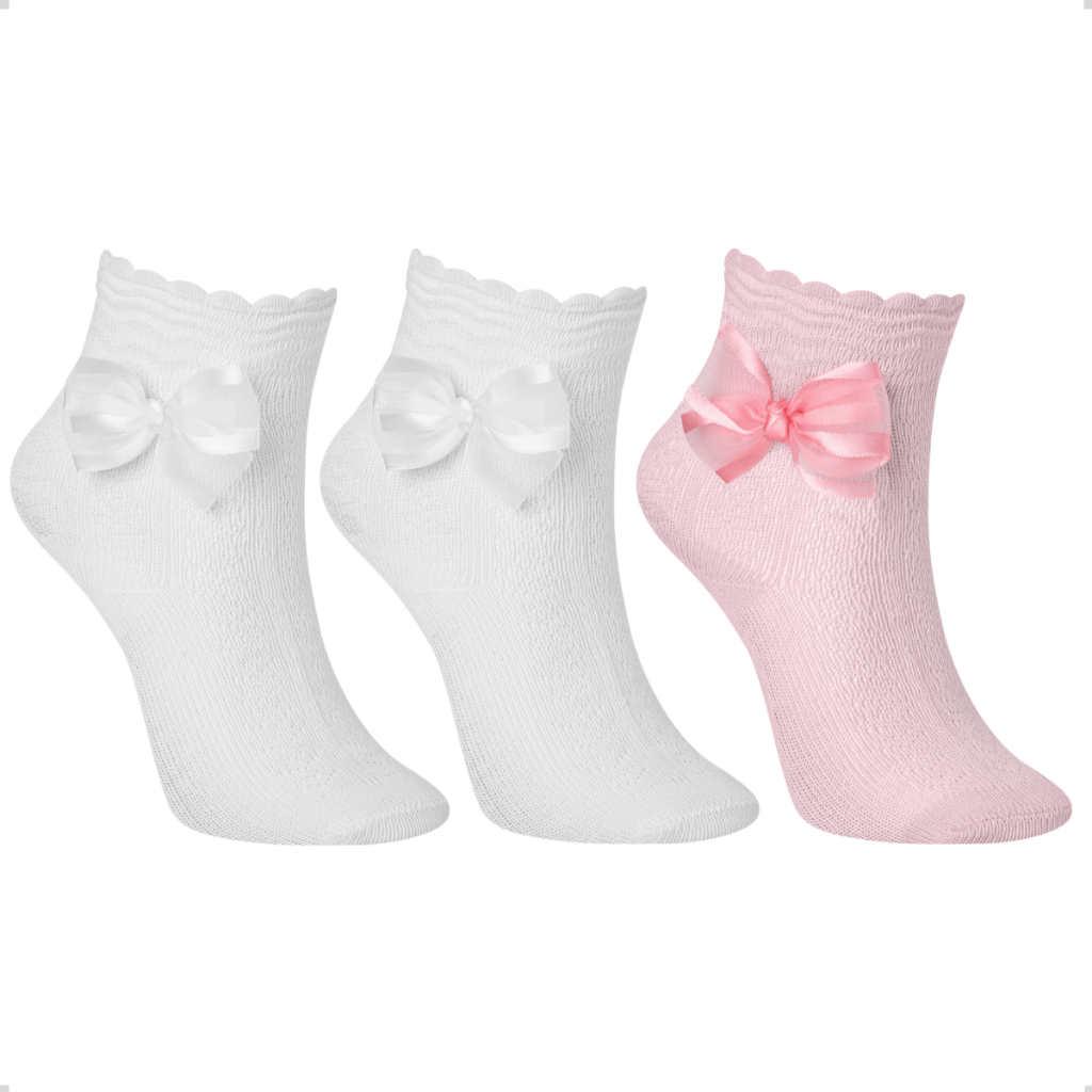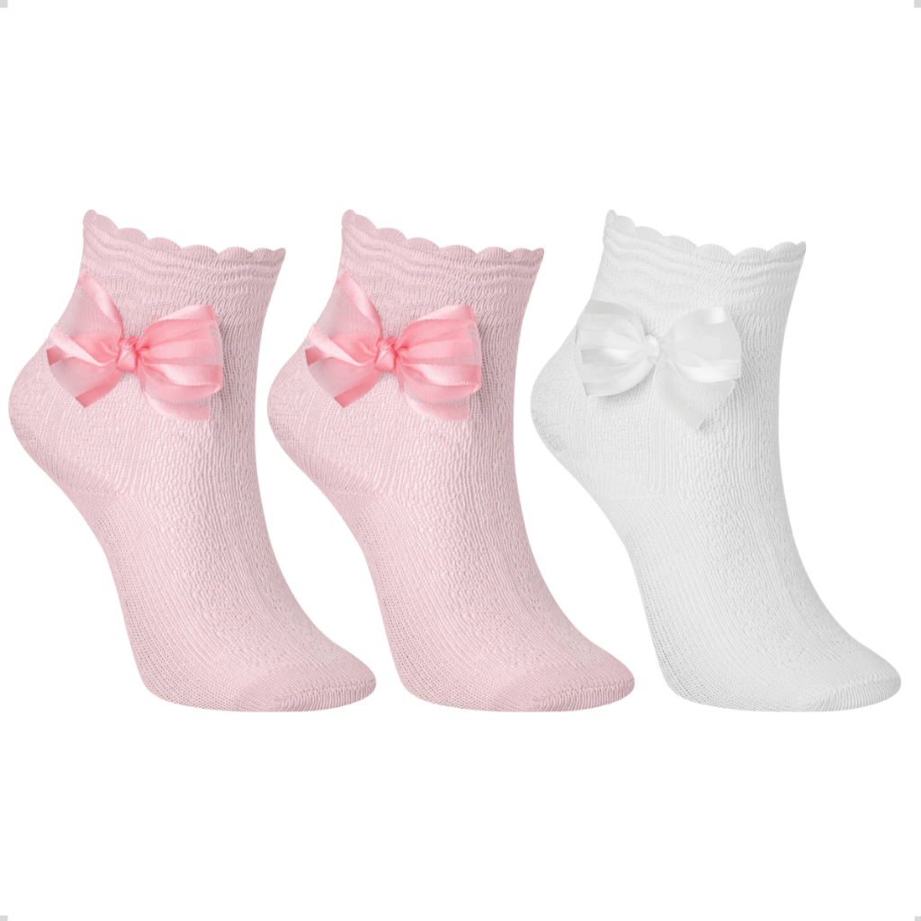 Kit 3 Pares Meia Algodão Menina Bebê Infantil Laço Recém-Nascido Cano Curto Decorada Batizado Festa