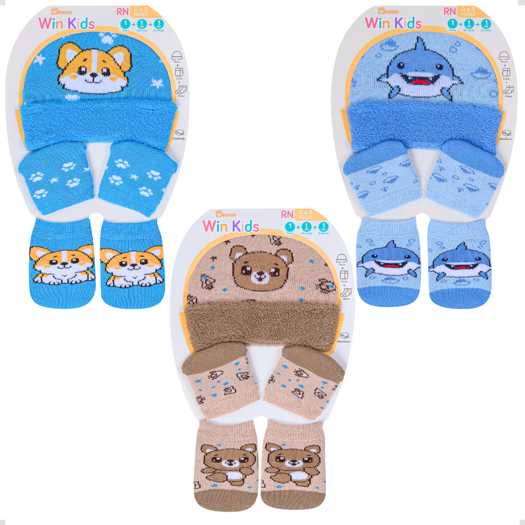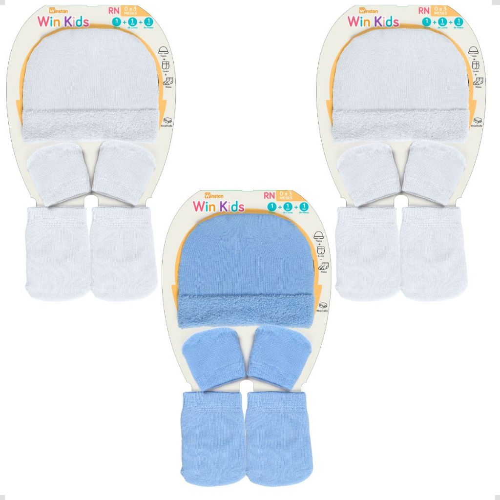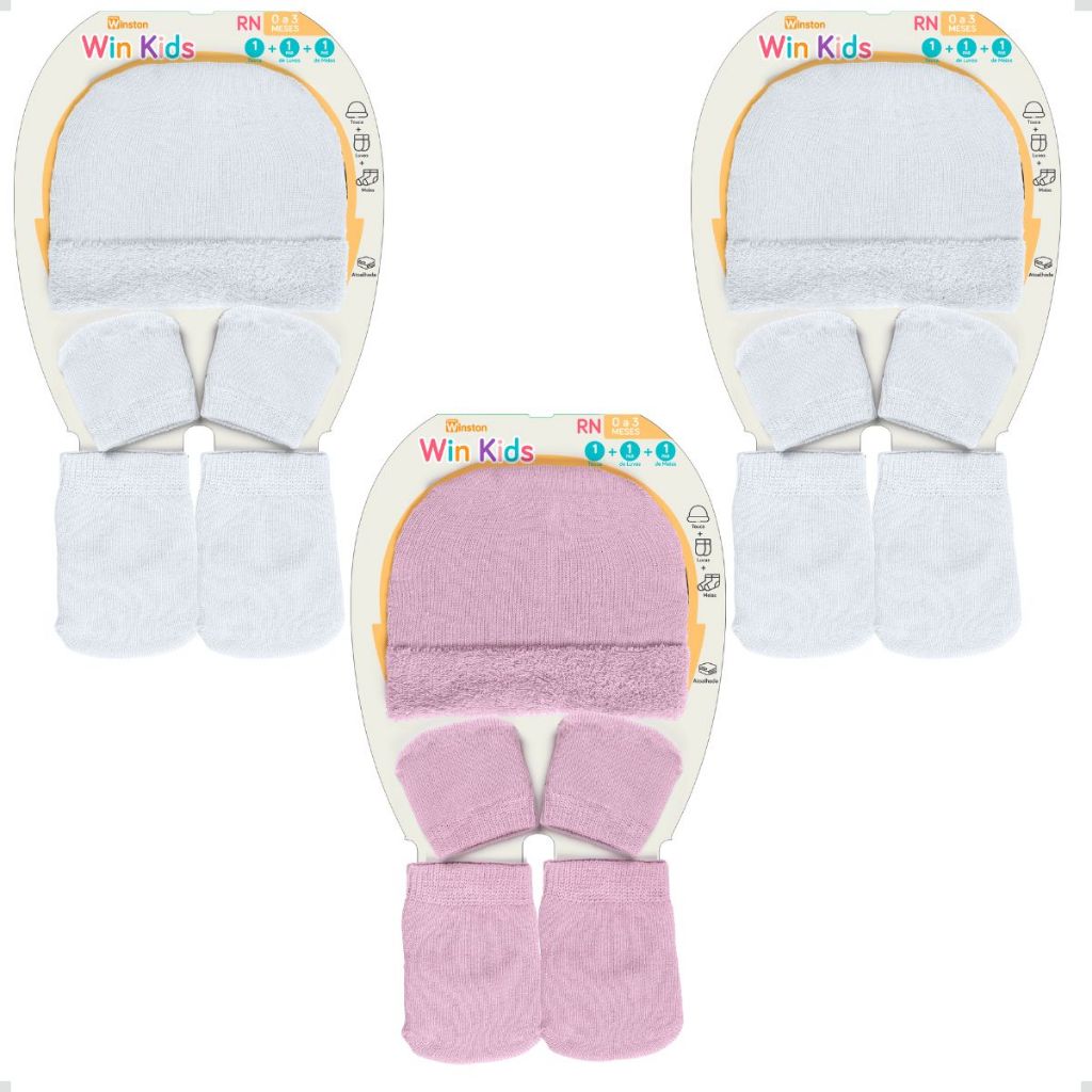 Kit 3 Touca Luva Meia Recém Nascido Algodão Menino Menina Bebê até 3 Meses Presentes Maternidade