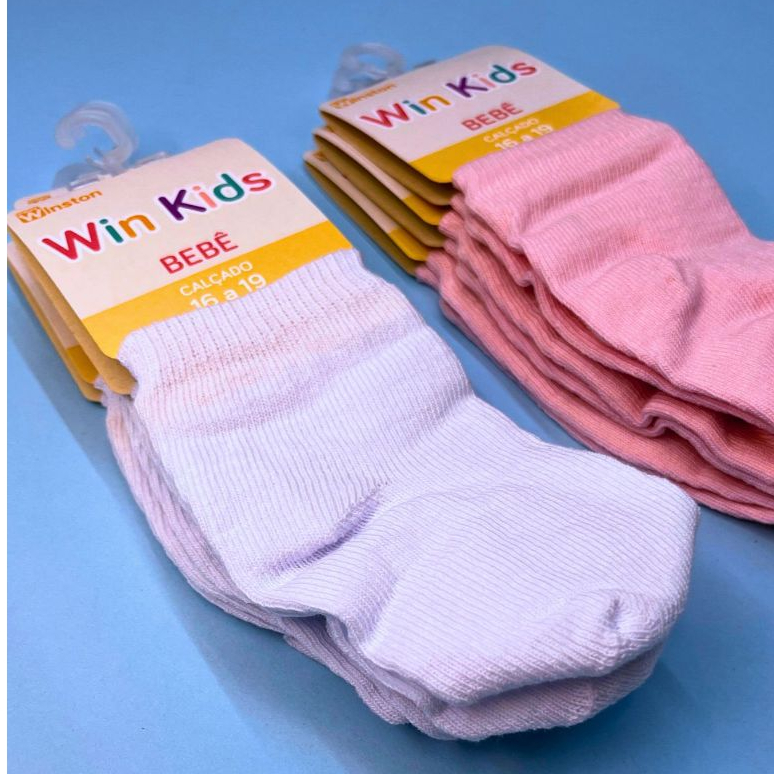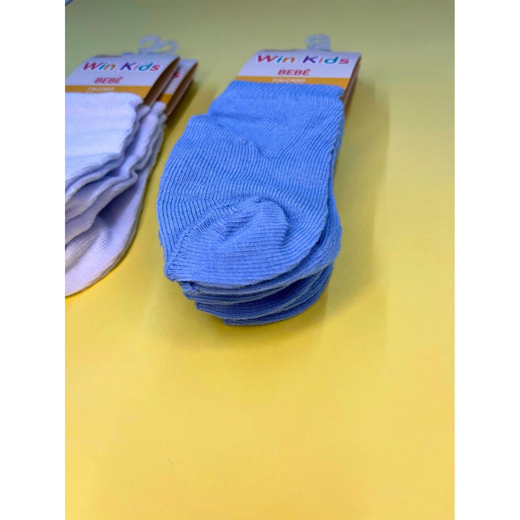 Kit 3 Pares Meia Bebê Infantil Recém-Nascido Algodão Estampada Desenho Menino Menina Lisa Enxoval
