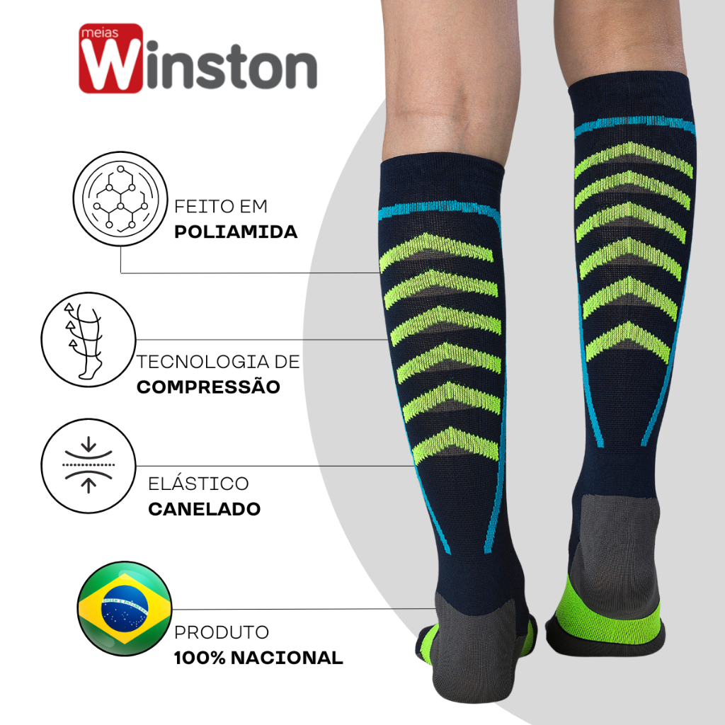Kit 2 Pares Meia Alta Compressão para Varizes Poliamida Circulação Má Circulação Dores Unissex
