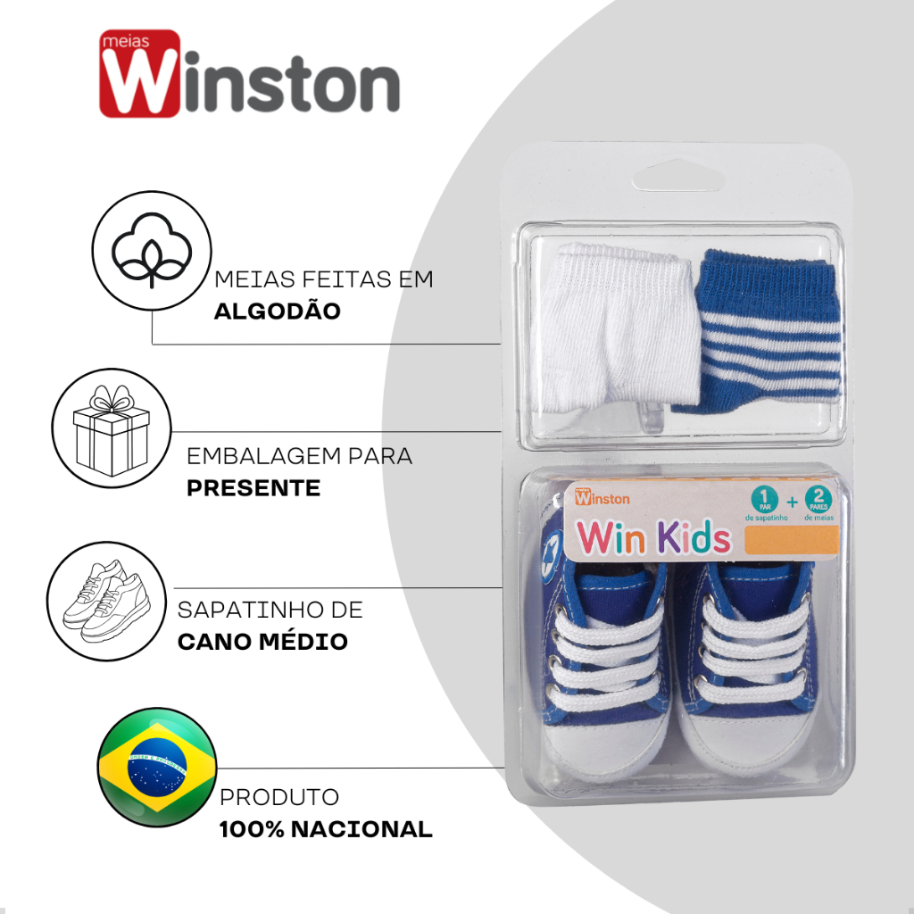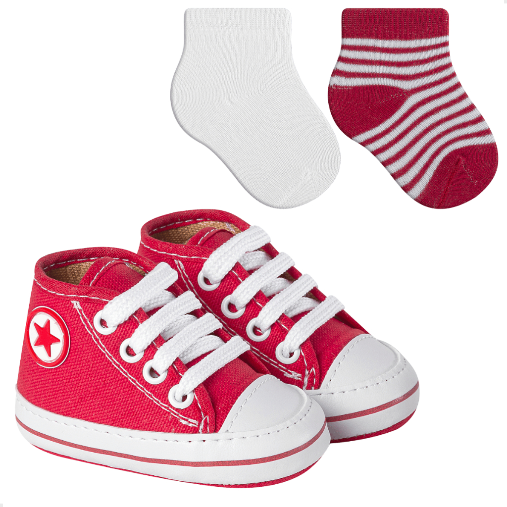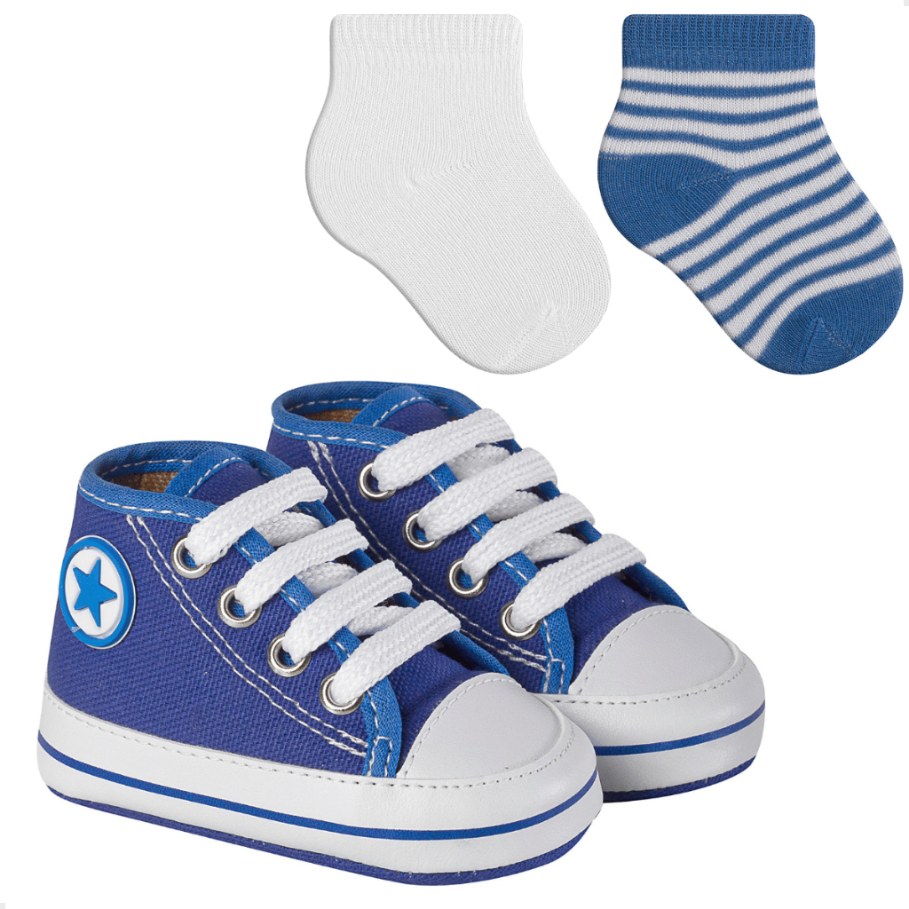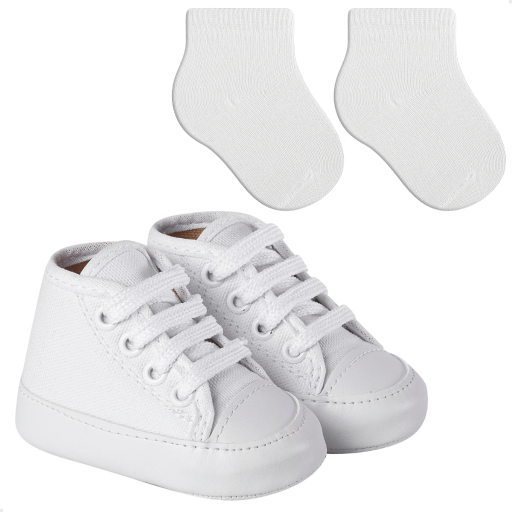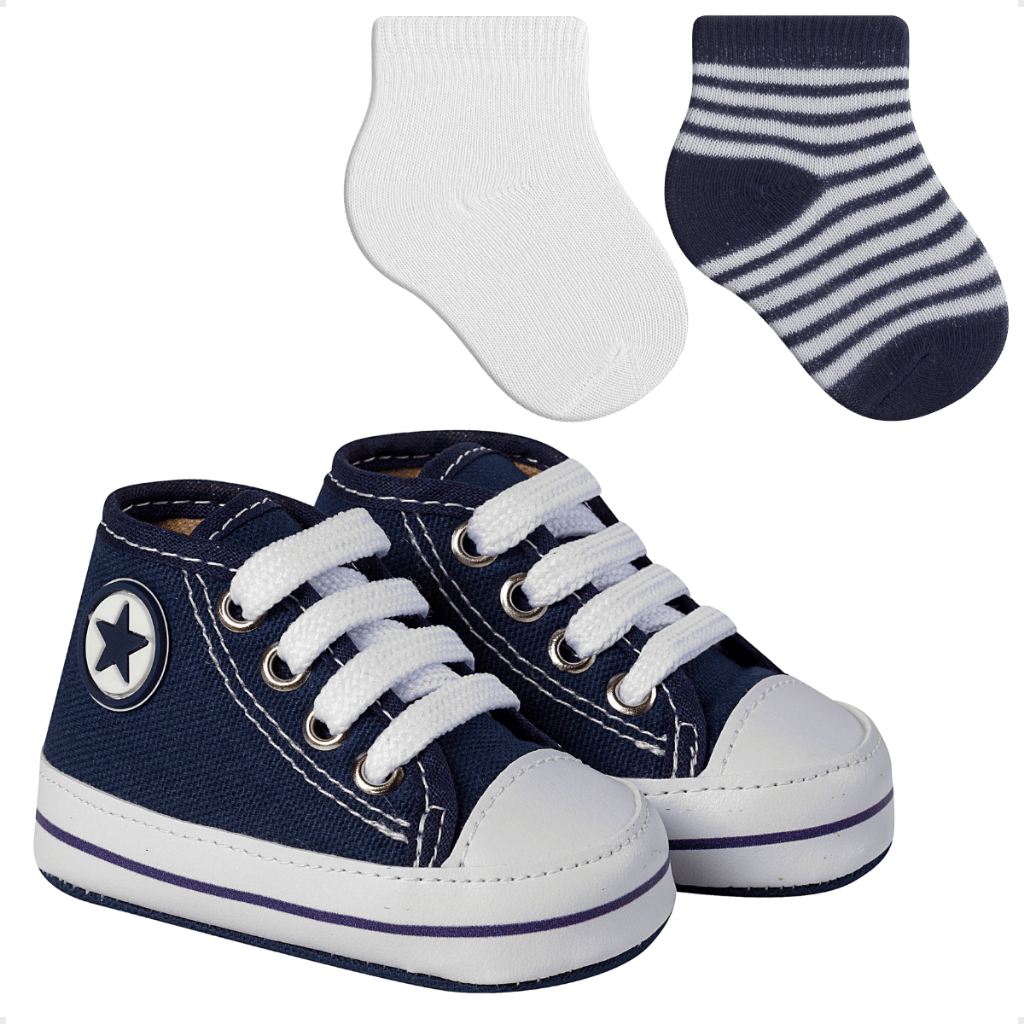 Kit Presente 1 Par de Tênis Sapatinho e 2 Pares de Meias Bebê Recém Nascido Rn Menina Menino Enxoval