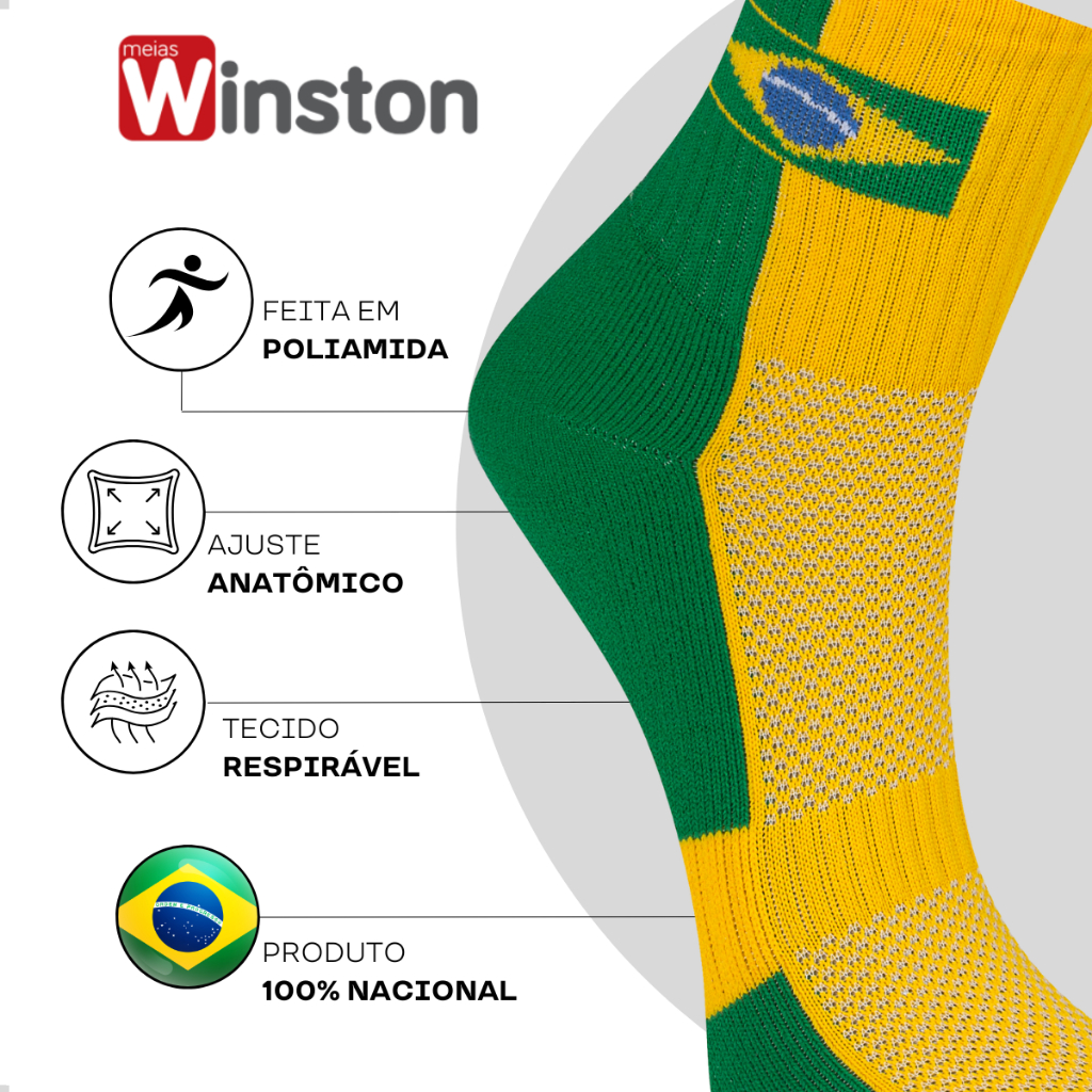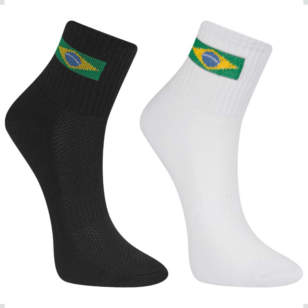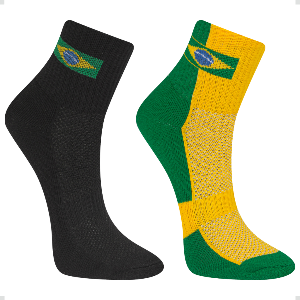 Kit 2 Pares Meia Copa do Mundo Brasil Poliamida Cano Médio Unissex Listrada Bandeira Performance