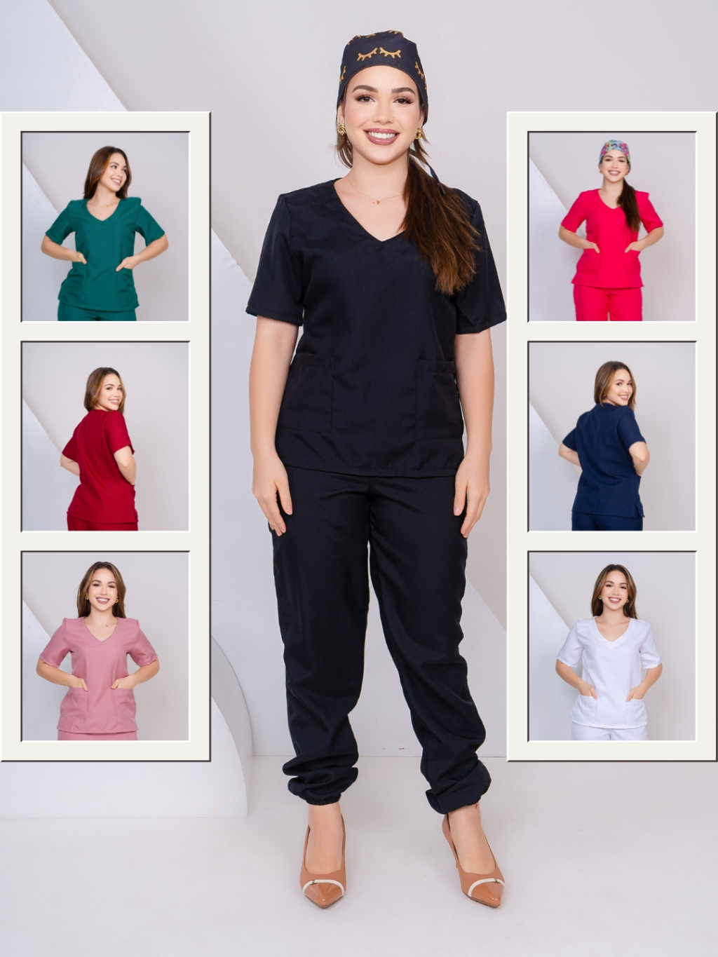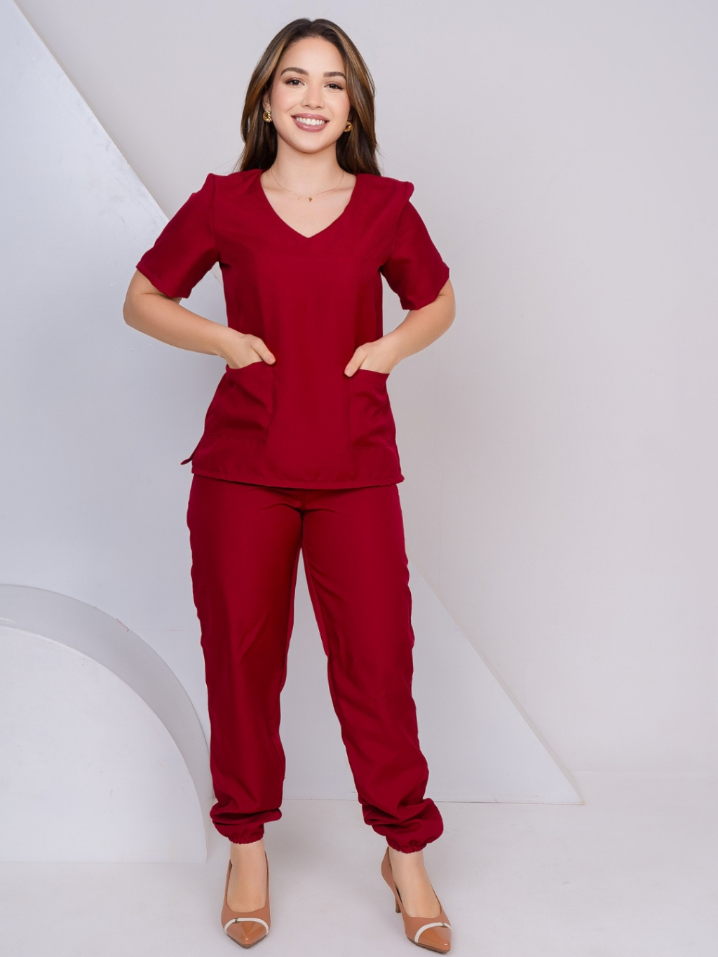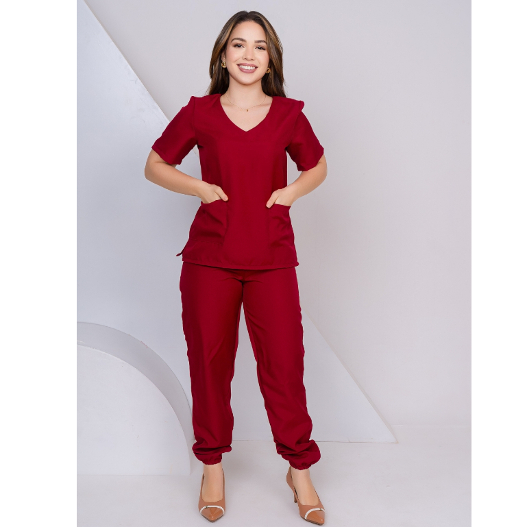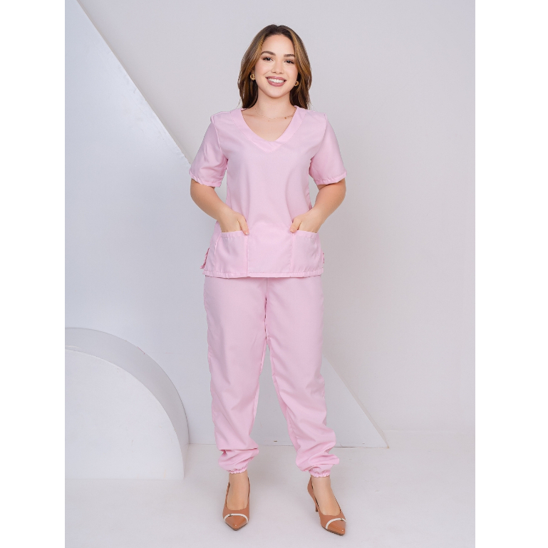Scrub Feminino Acinturado Jogger Rosê Lavanda Preto Verde Bandeira Pink Vinho