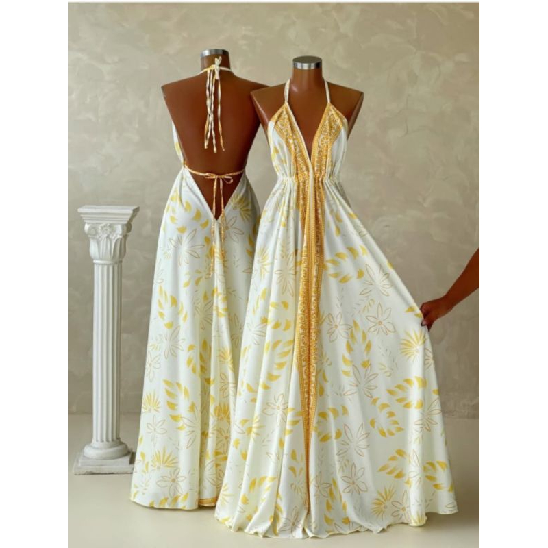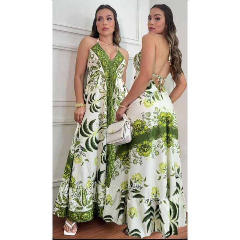 Vestido longo decote indiano costas nua
