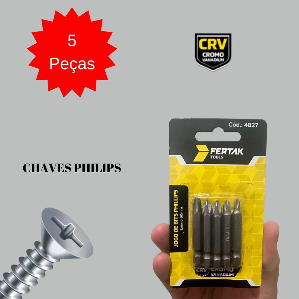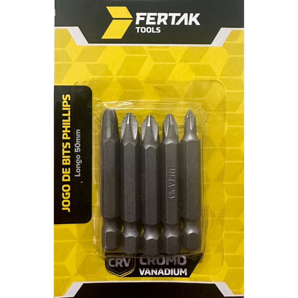 Jogo 5 peças Bits Philips Longo Aço Parafusadeira 50 mm 5 cm